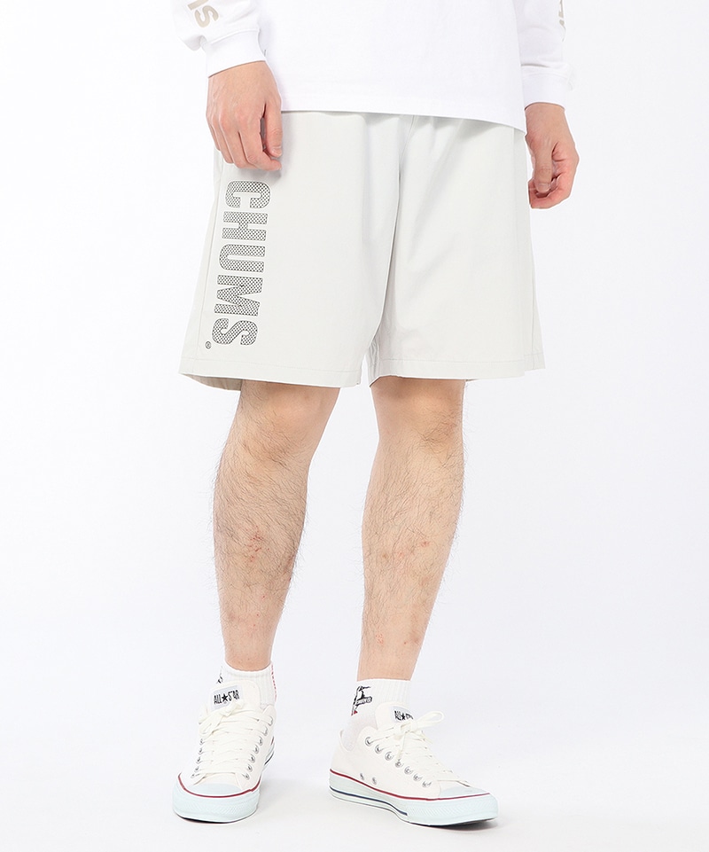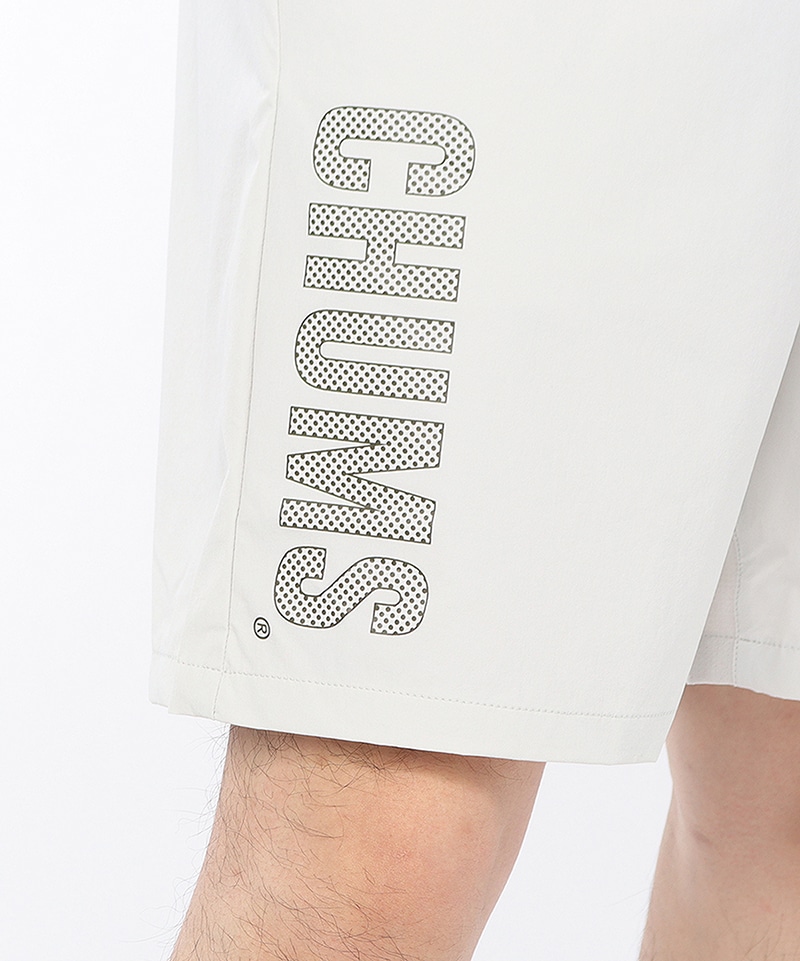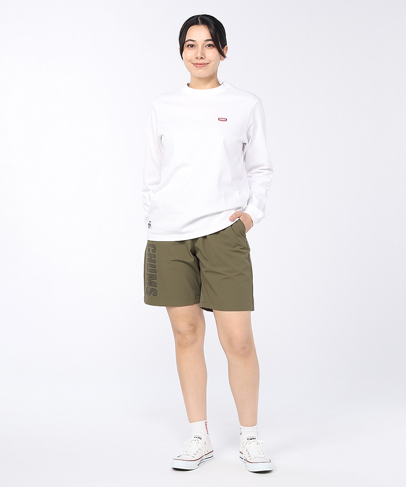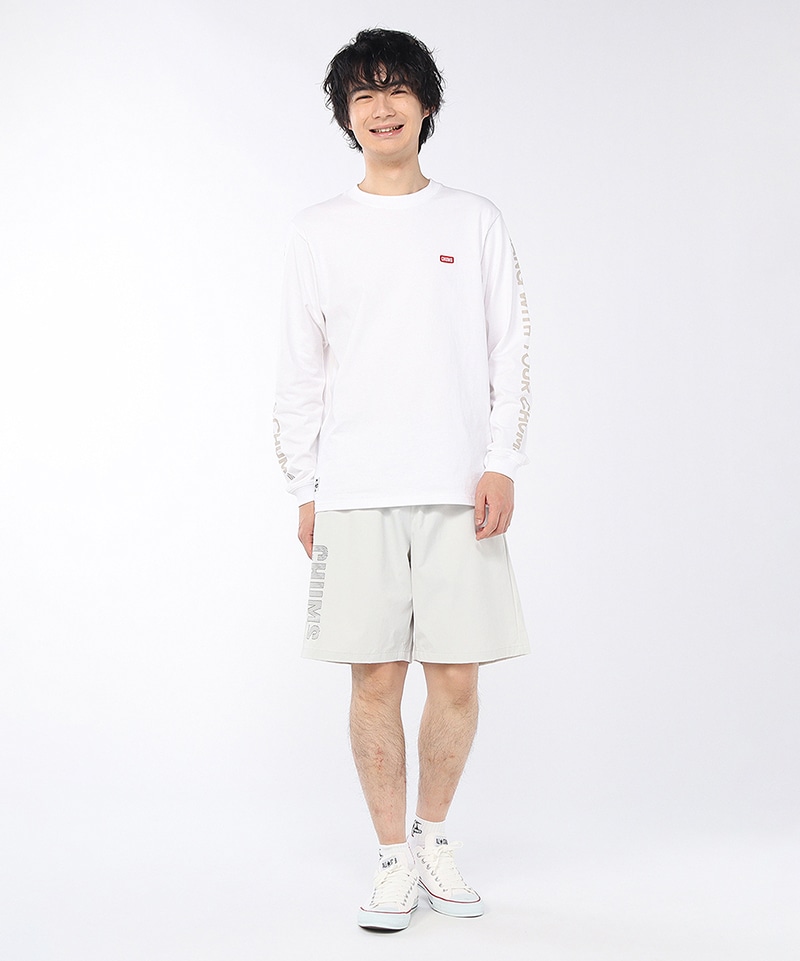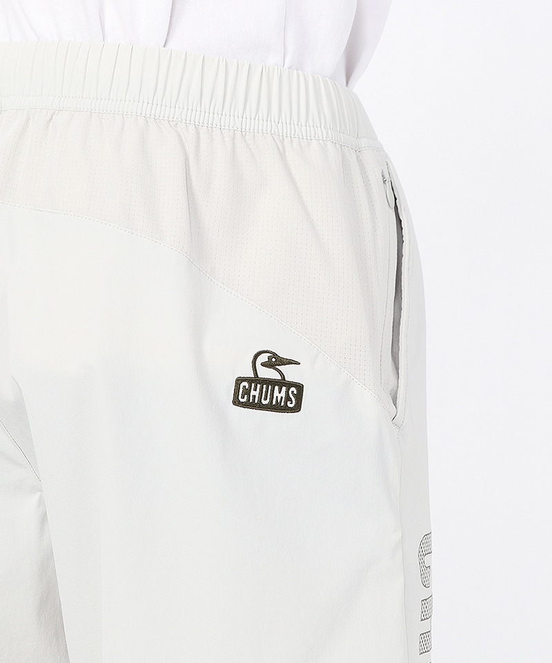 後面にはブービーフェイスロゴをワンポイントで配し、右足にはドット調のCHUMSロゴをレイアウト。さらに右サイドにはファスナー付きポケットを備え、デザイン性と利便性を兼ね備えた一枚です。