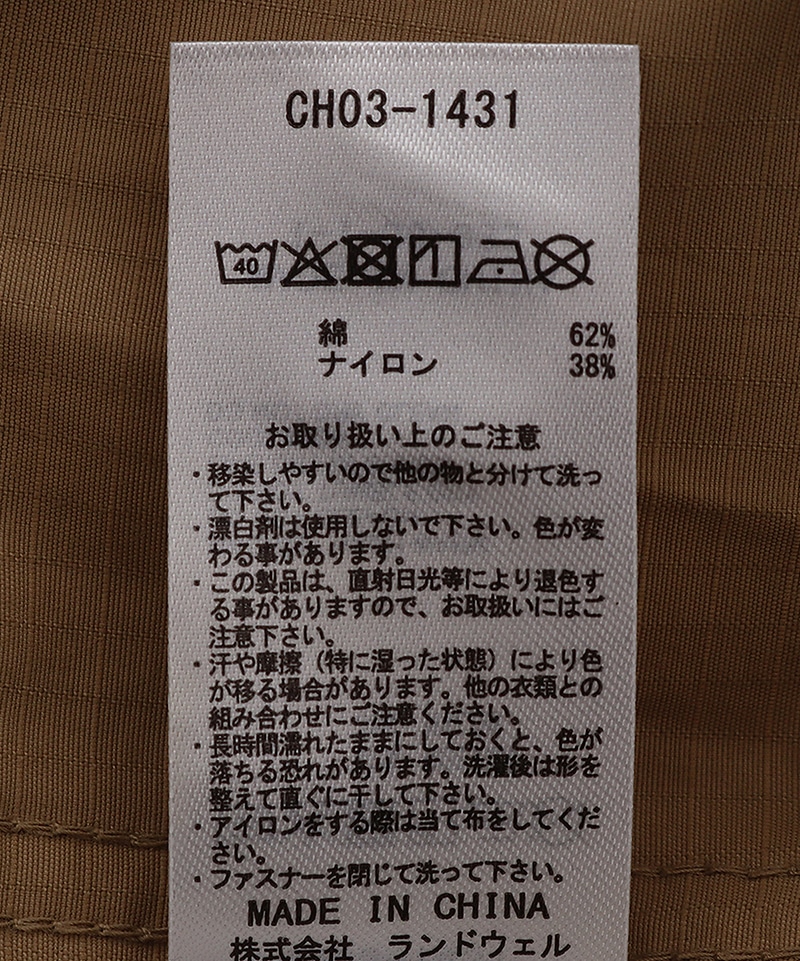 軽量で耐久性に優れたコットンとナイロンを混紡したリップストップ生地を使用。コットンの自然な風合いとナイロンのハリを併せ持ち、アウトドアからタウンユースまで幅広いシーンで活躍。摩擦や引き裂きに強く、タフに着用できる素材です。