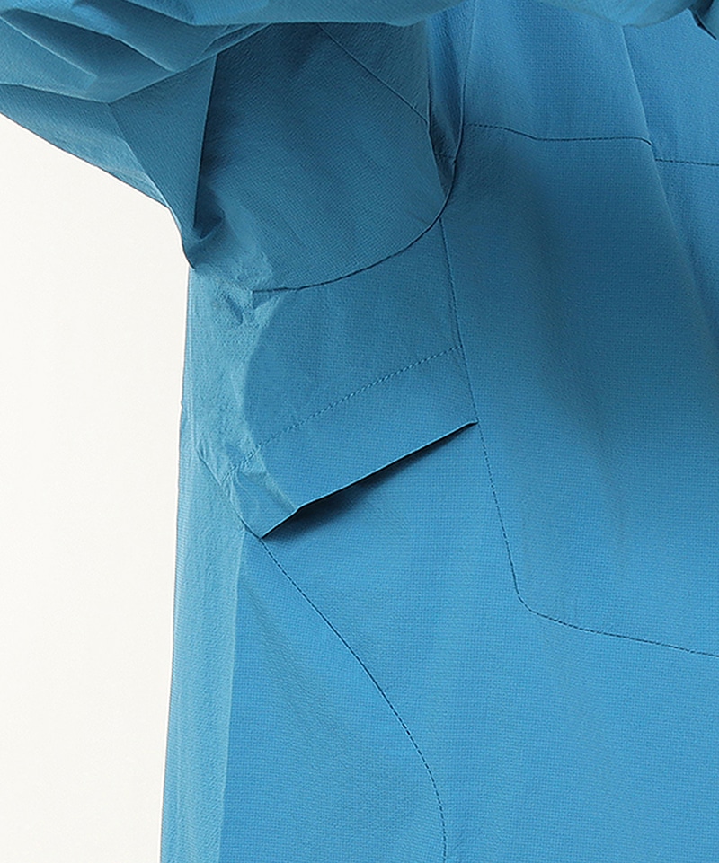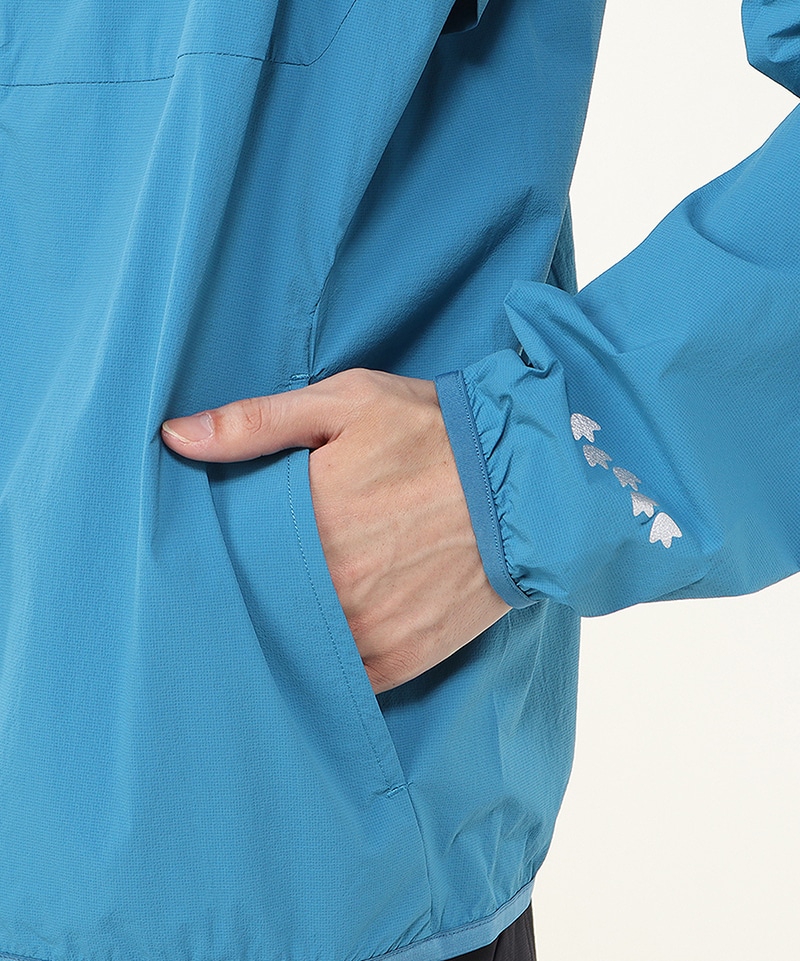 ・脇下、後ろ身頃、フード後面、袖先にベンチレーションを配置