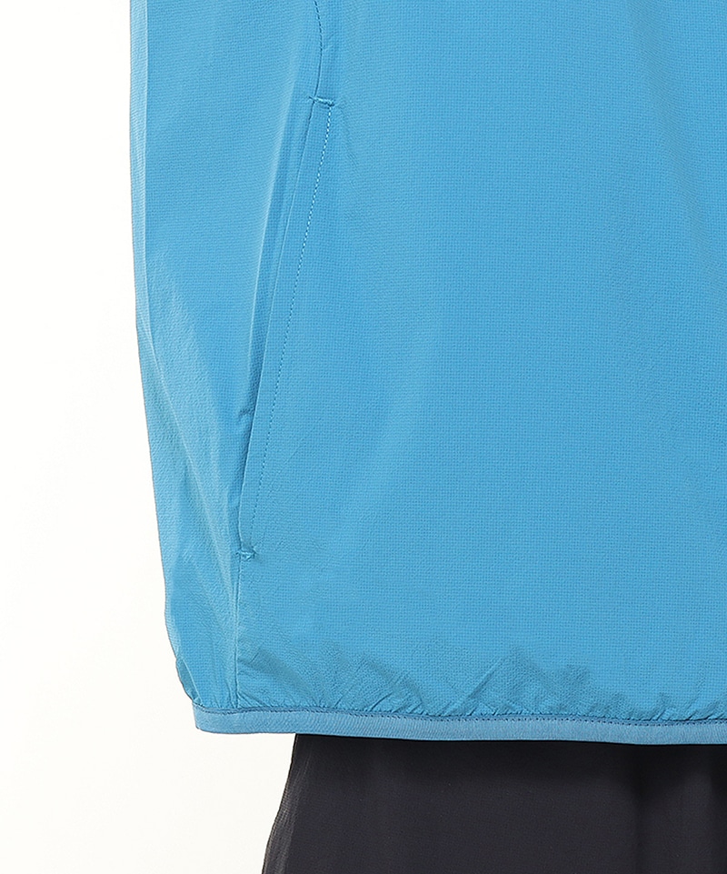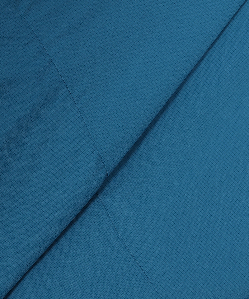撥水加工を施したナイロン×ポリウレタンのストレッチ素材を採用。適度な伸縮性とドライタッチのさらりとした肌触りが特徴。さらに生地表面の凹凸構造と随所に配したベンチレーションにより、ランニング中も快適な着用感をキープします