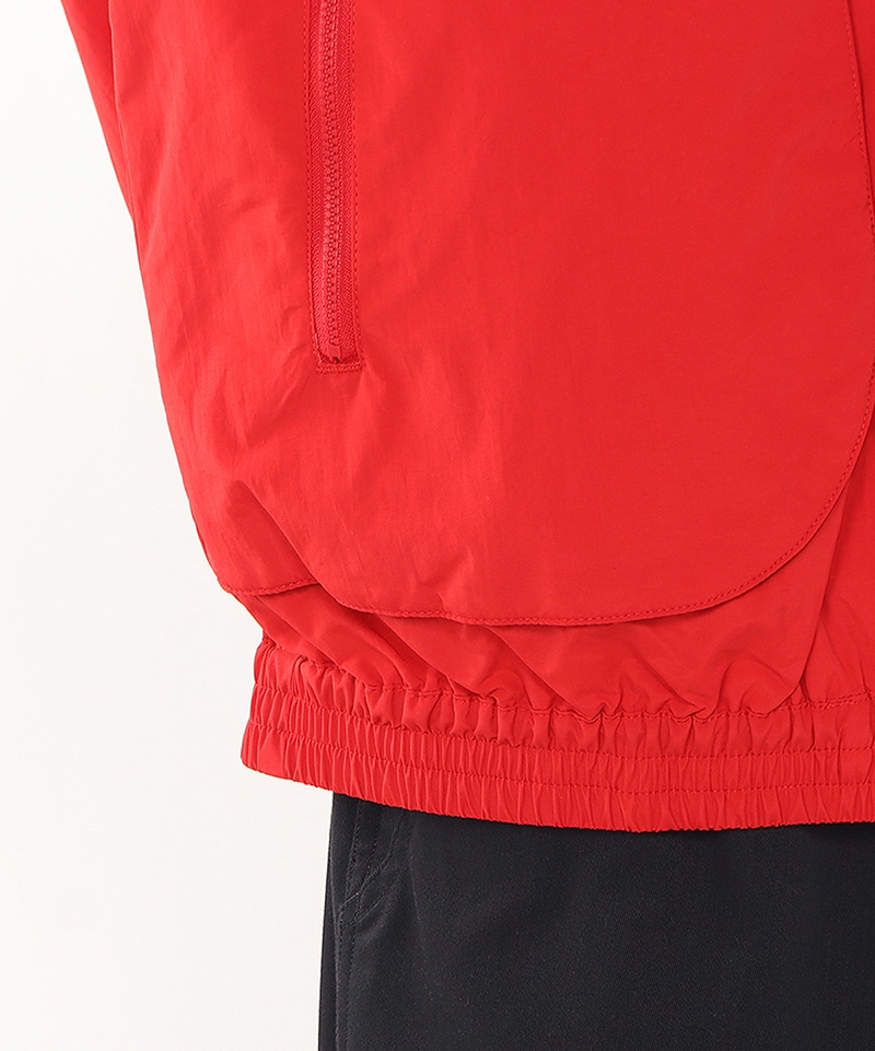 表地にはハリがあり耐摩耗性に優れたナイロンタッサー素材、裏地にはメッシュ素材を使用。胸下と背面にベンチレーションを備えたことで通気性が良く、撥水加工により小雨程度なら安心して着用可能。機能性と軽快さを兼ね備えた、さまざまなシーンで頼れる一着です。