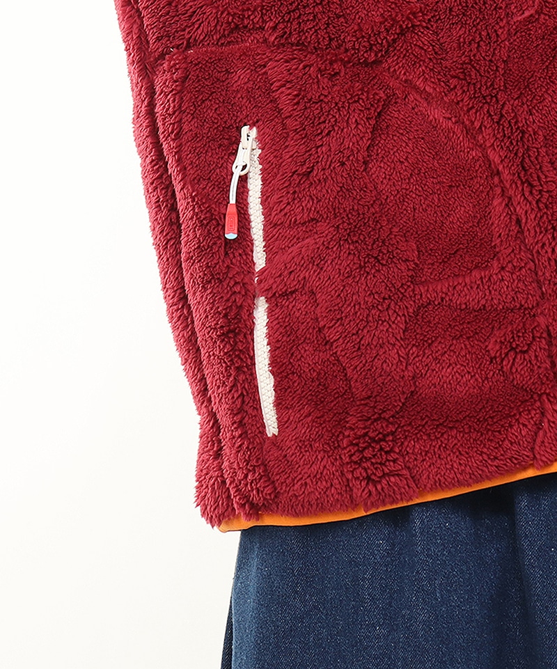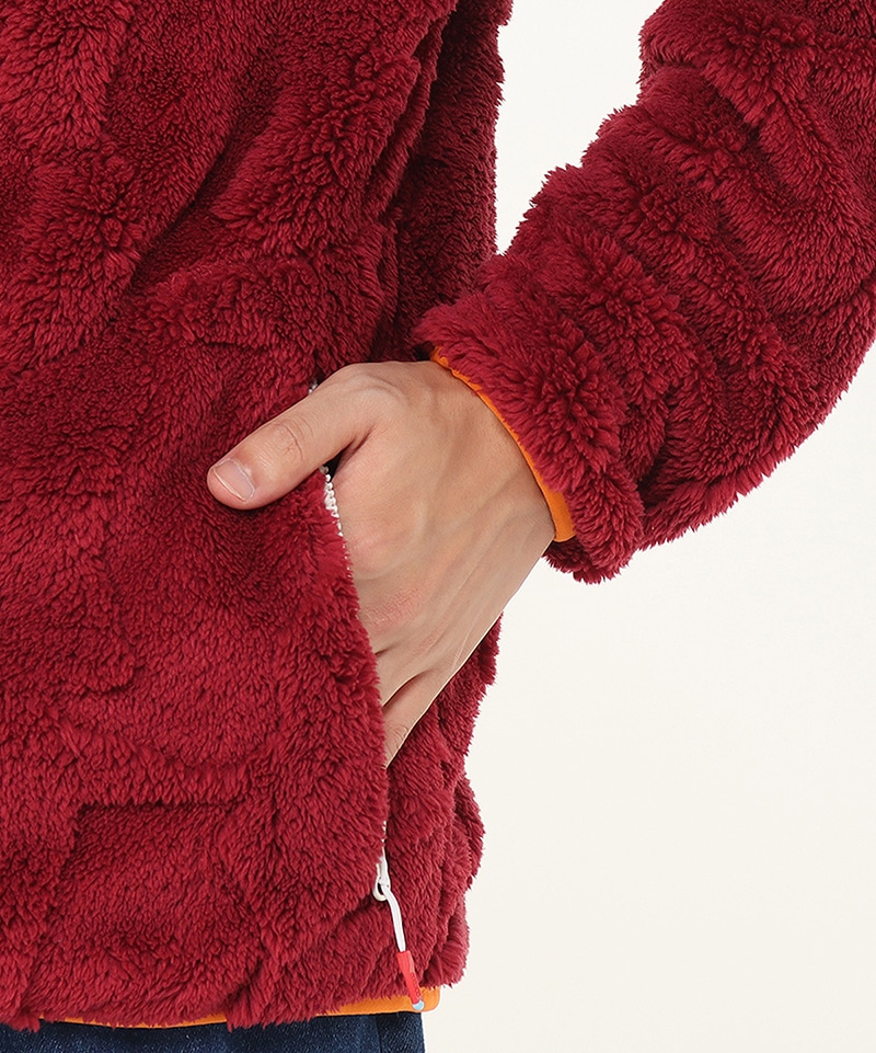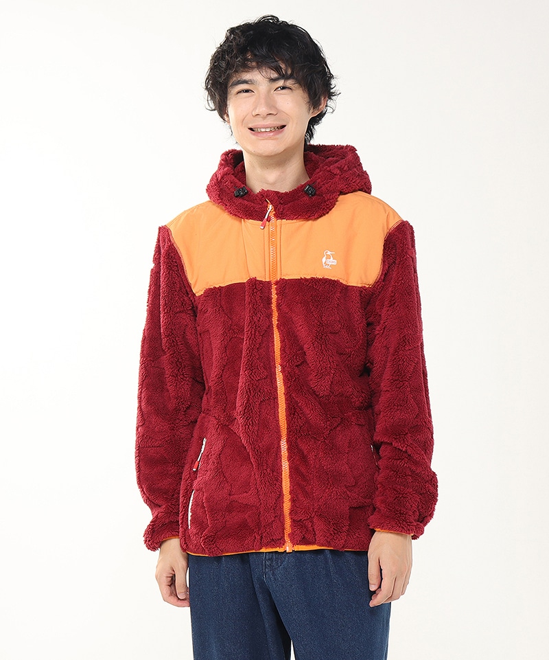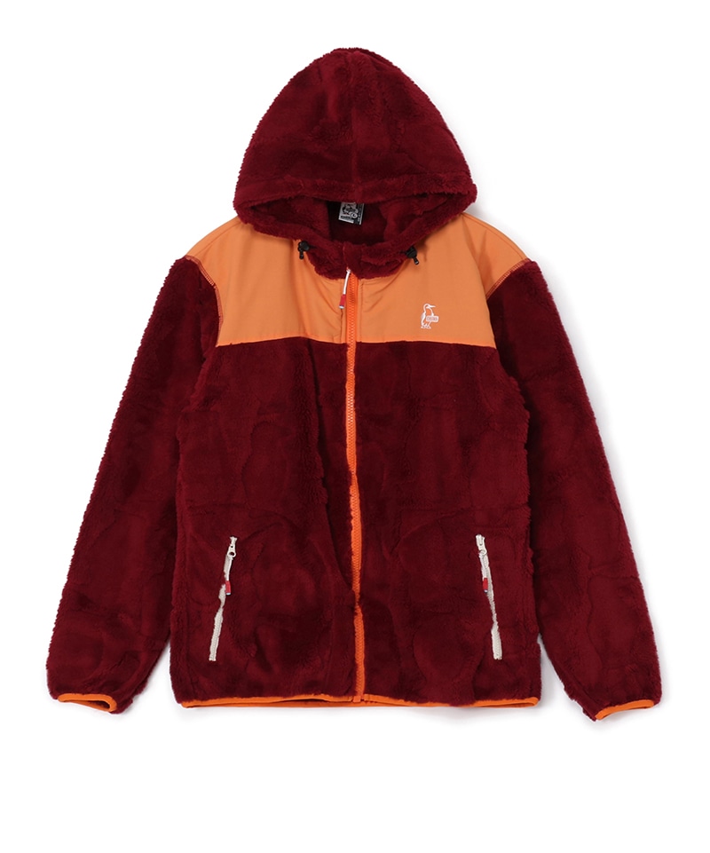 毛足の長さを切り替えることで、ブービーバードのシルエットを表現したジャカード織のフリースジップパーカー。エルモフリース特有の優しい肌触りはそのままに、CHUMSらしいあそびゴコロを加えたデザインにアップデートしました。
