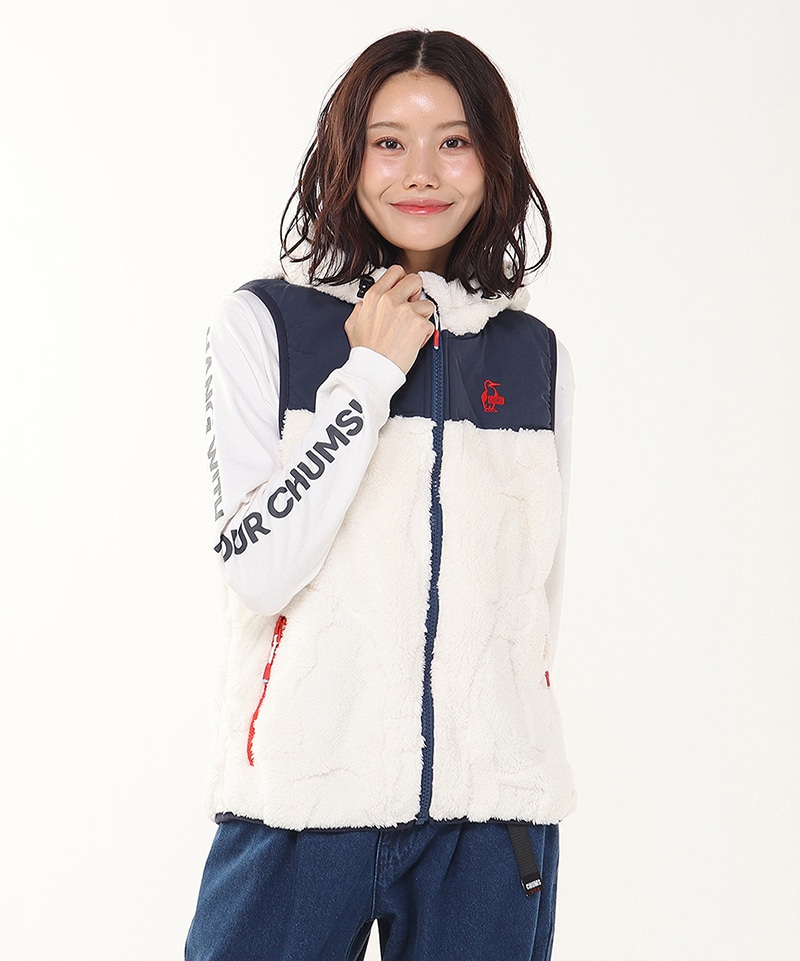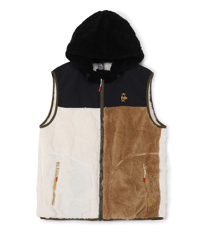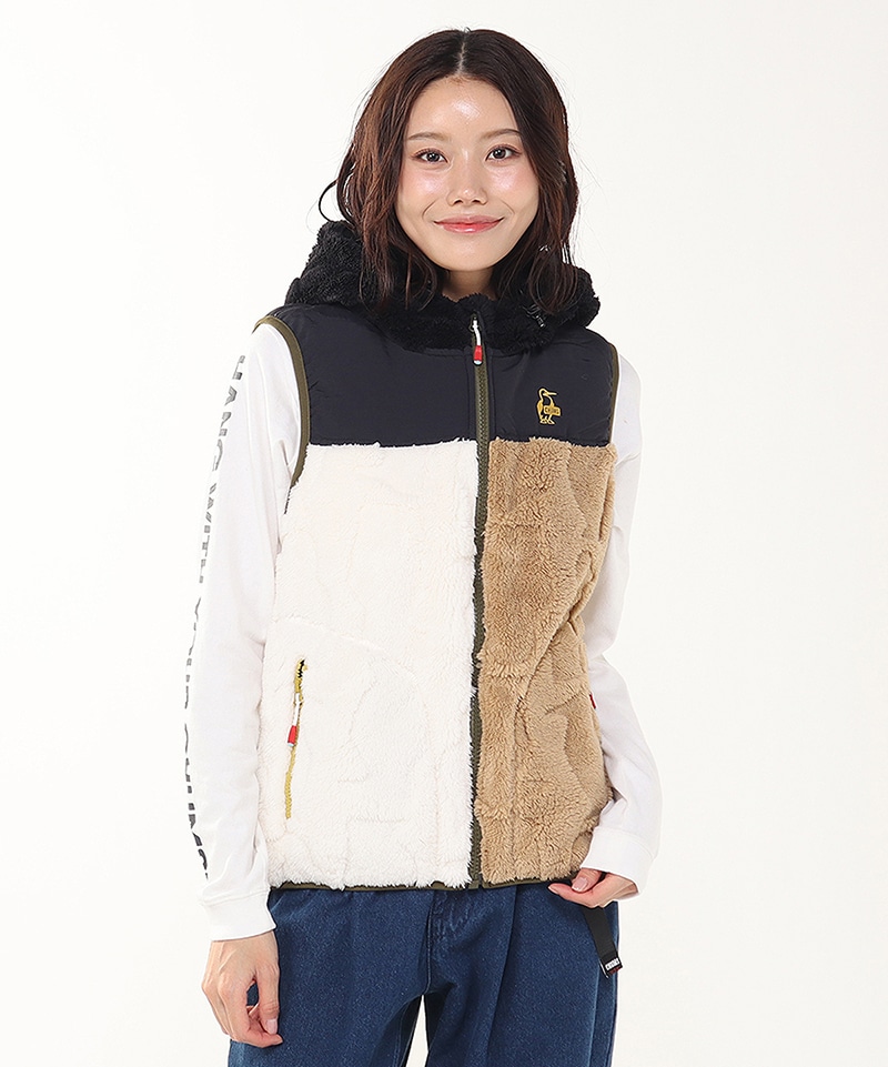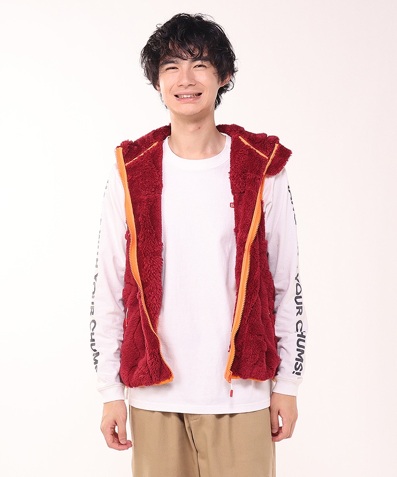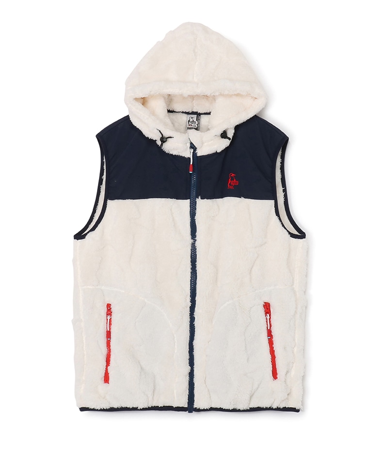 フリースの毛足の長さを切り替えることで、ブービーバードのシルエットを表現したジャカード織のフリースベスト。エルモフリース特有の優しい肌触りはそのままに、CHUMSらしいあそびゴコロを加えたデザインにアップデートしました。