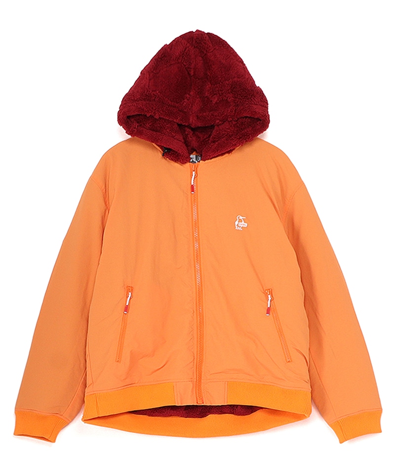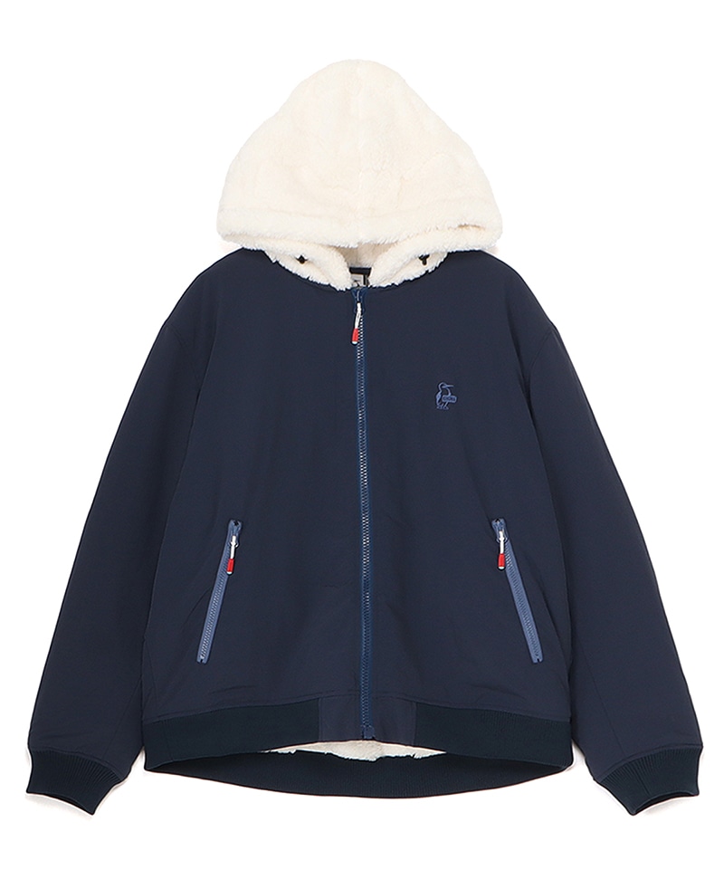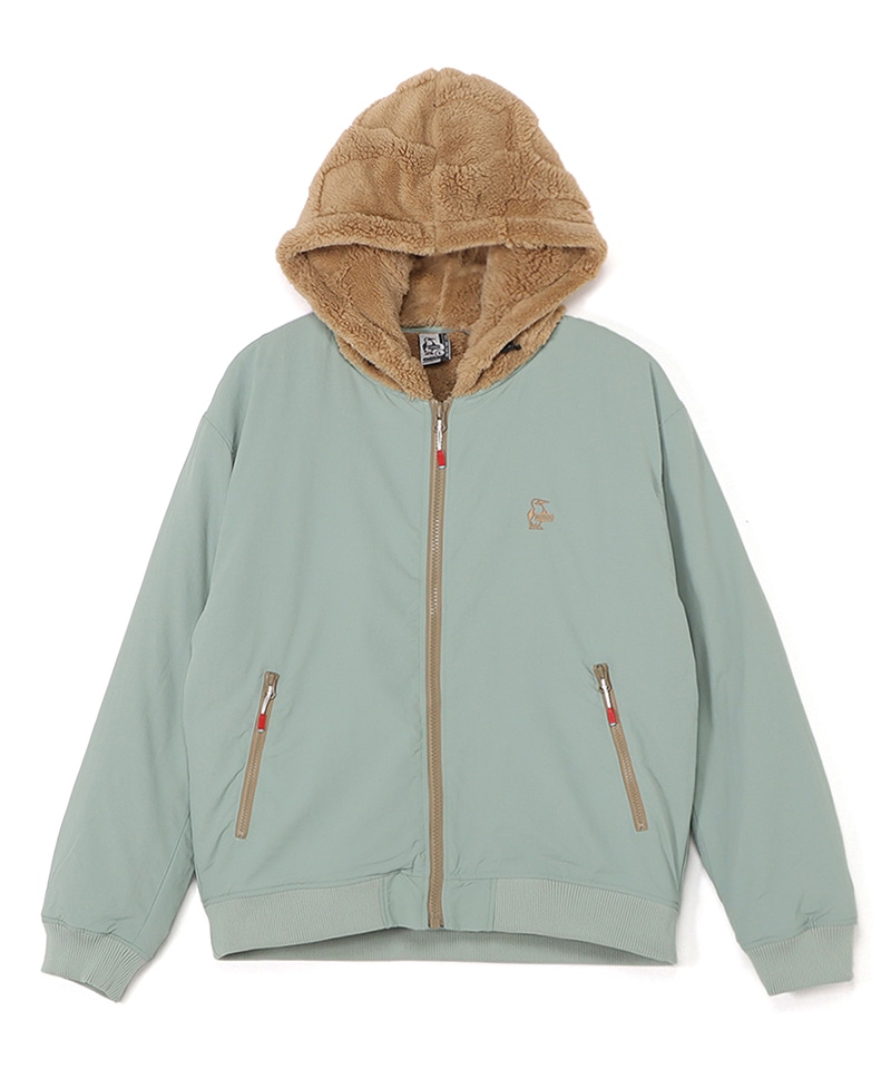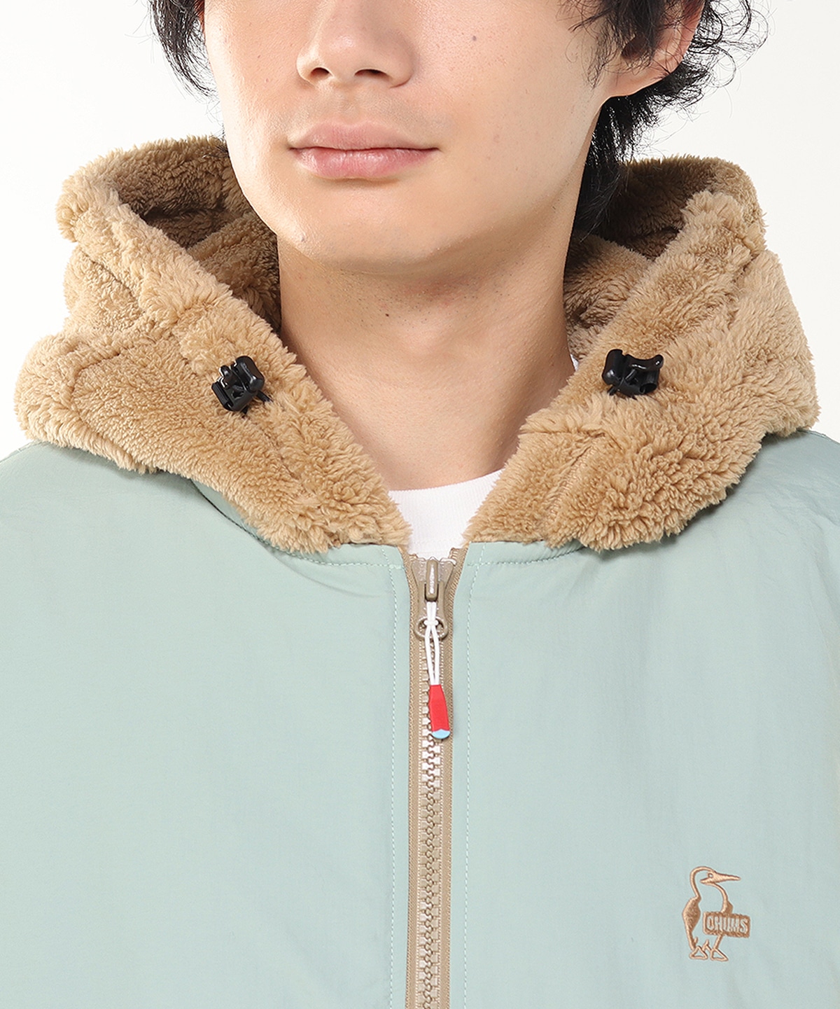 表地にナイロン、内側にエルモフリースを使用したフード付きのフリースブルゾン。フライトジャケットとパーカーを重ね着したようなデザインが特徴的。無骨になりがちなミリタリーテイストにエルモフリースの柔らかさをミックスすることで、CHUMSらしい可愛げのあるアウターに仕上げました。