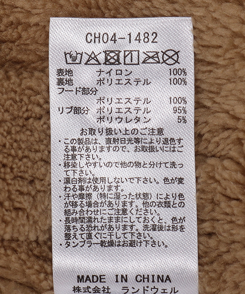 - Material:Face side/ Nylon 100% Back side/ Polyester 100% Hood / Polyester 100%