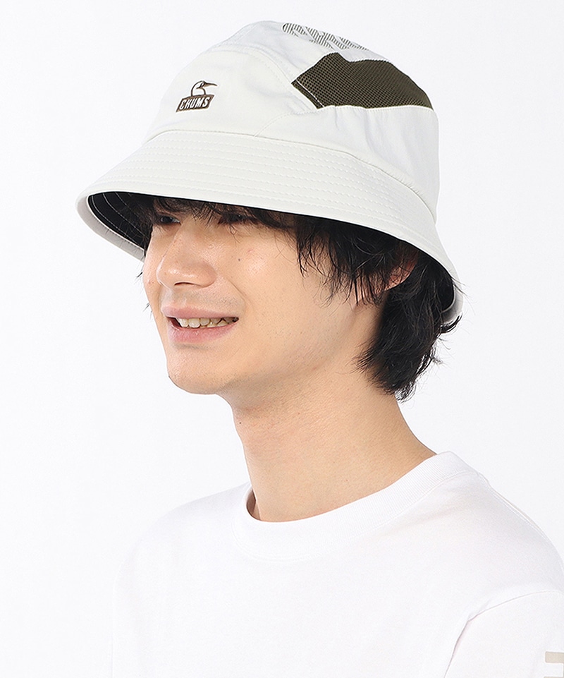 高い機能性を備え、アウトドアからタウンユースまで幅広く使えるハット。フロントにはブービーフェイスロゴの刺繍を、頭上にはCHUMSロゴプリントを大胆にレイアウト。側面の切り替えでブービーフェイスを表現し、CHUMSらしいあそびゴコロを感じられるデザインに仕上げています。
