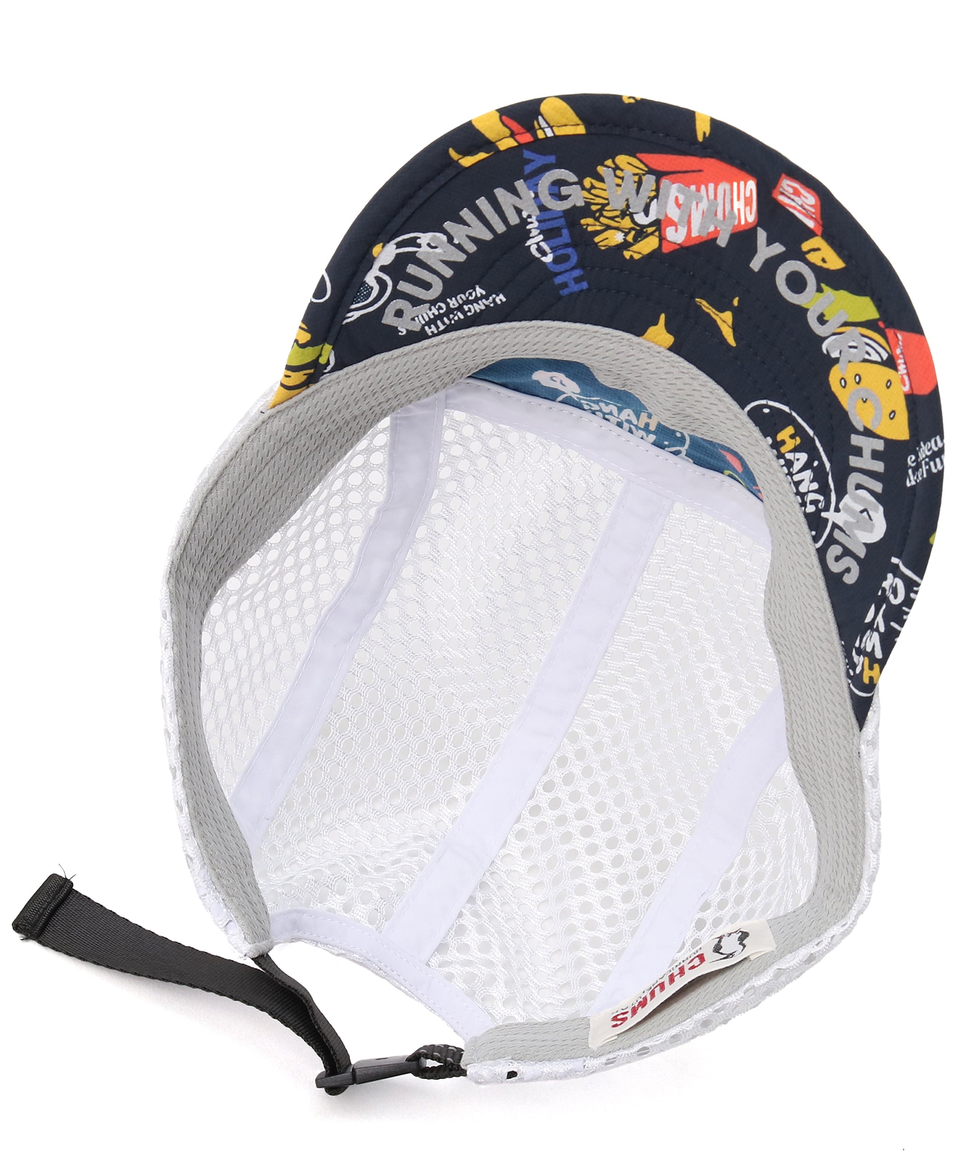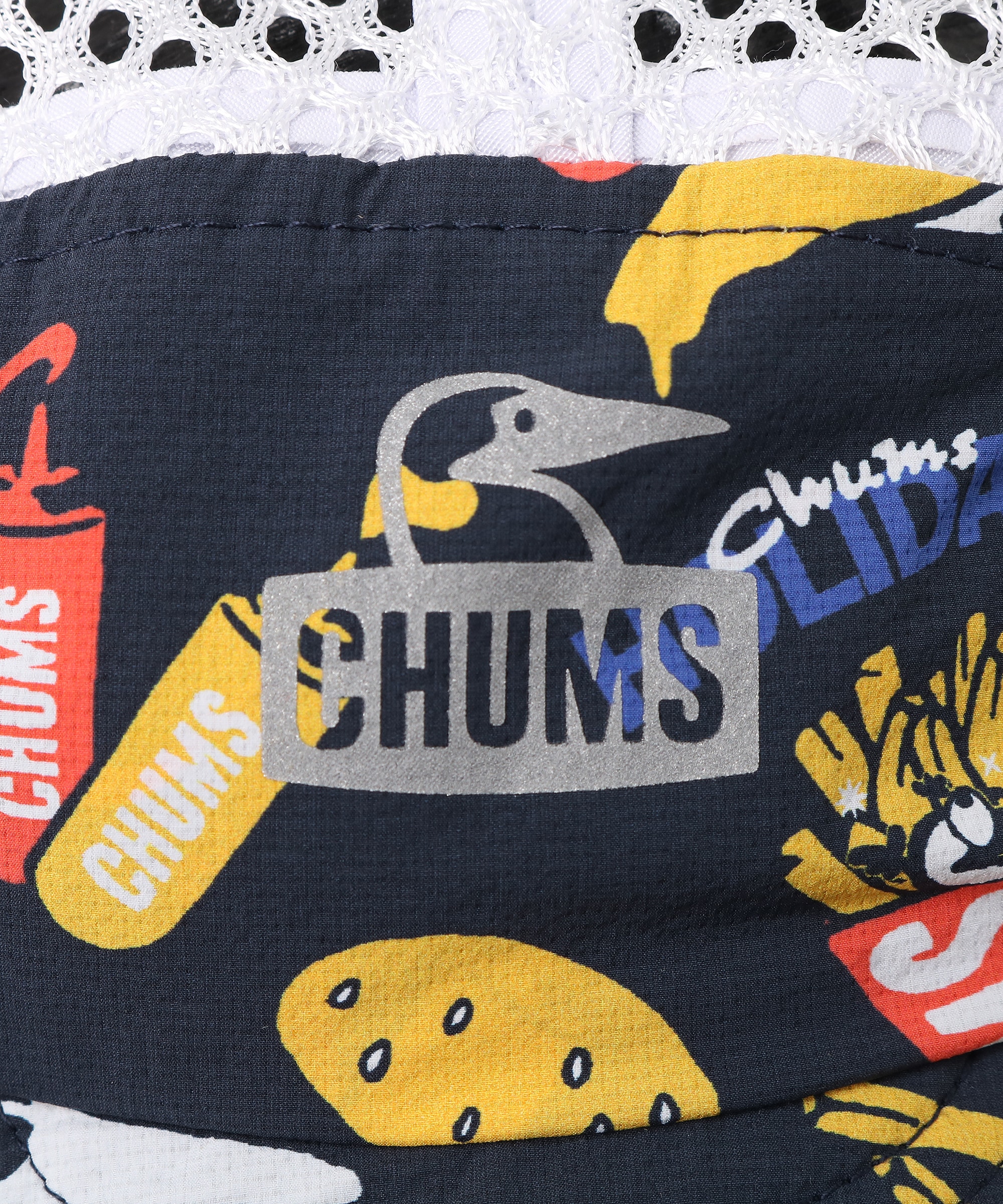 フロントにはブービーフェイスロゴ、背面にはリフレクターテープを配置し、夜間の視認性を確保しつつデザインのアクセントに。つば裏には「RUNNING WITH YOUR CHUMS!」のリフレクタープリントを施し、CHUMSらしいあそびゴコロをプラスしました。
