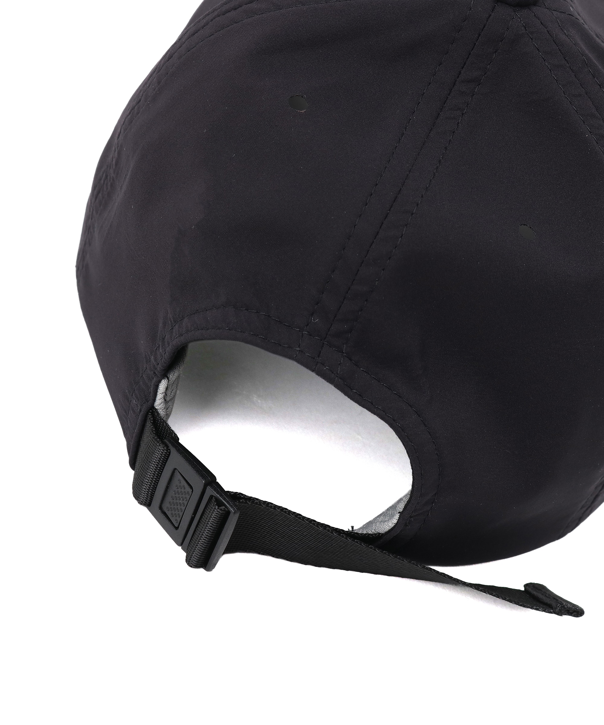 左サイドにはコラボロゴをプリントし、コラボレーションならではの特別感を演出。後部はテープ&バックル仕様で、ランニング中でもスムーズにフィット感の微調整が可能です。ツバ裏はブラック配色にすることで、真夏の強い日差しによる照り返しを軽減。右サイドにはブービーフェイスロゴを配しました。