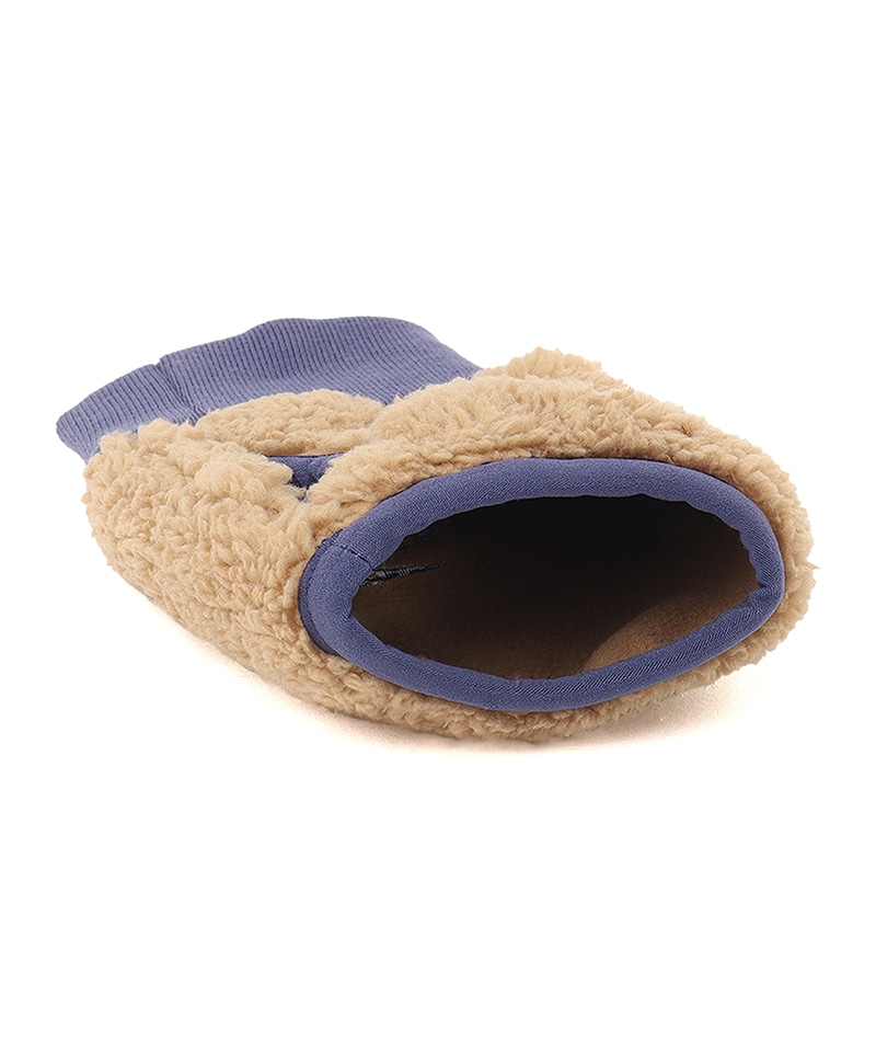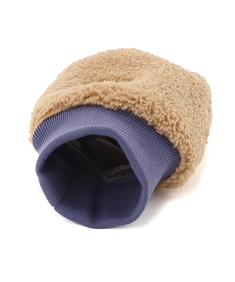 表地には肉厚なボアフリース、裏地にはソフトなマイクロフリースを使用。さらに、その間に防風フィルムを挟み込むことで、冷たい風を遮断しながら圧倒的な保温性を実現しました。ボリューム感がある見た目ながらも軽量で、ふんわり包み込まれるような着け心地の良さが魅力。