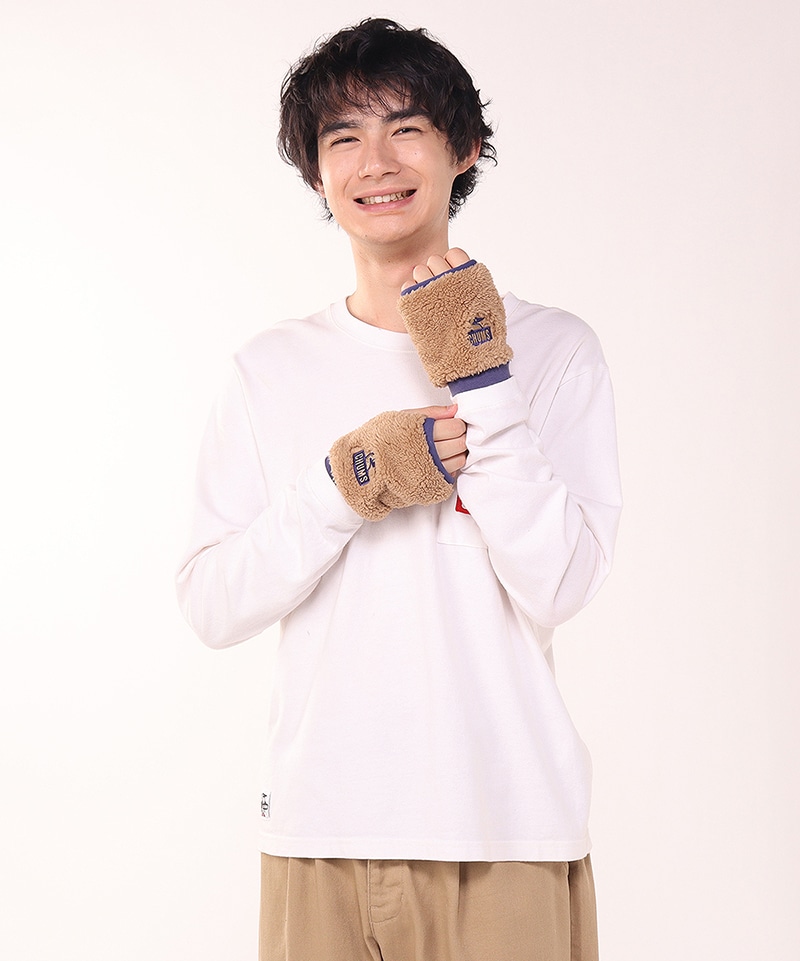 CHUMSの冬の定番、ボンディングフリースを使用したカフゲイター(フィンガーレスグローブ)。指先が出るデザインで、スマートフォンやタブレットの操作もスムーズに行えます。デイリー使いはもちろん、寒い季節のランニングやアウトドアにも適したアイテムです。