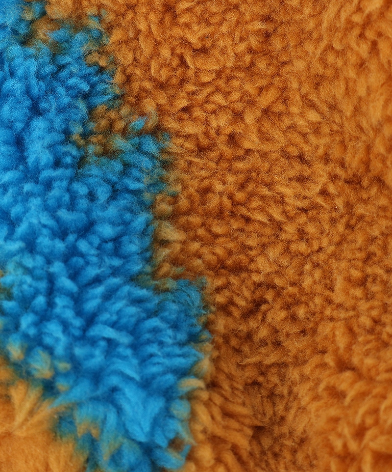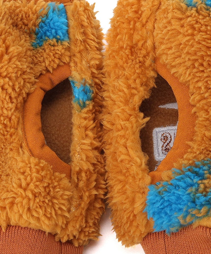 表地には厚みのあるボンディングフリース、裏地には肌ざわりのよいマイクロフリースを使用。2枚のフリースの間に防風フィルムを挟み込むことで、風をしっかり遮断し、圧倒的な保温力を発揮します。まるで毛布に包まれているような、安心感のあるあたたかさが魅力です。