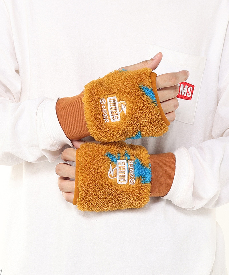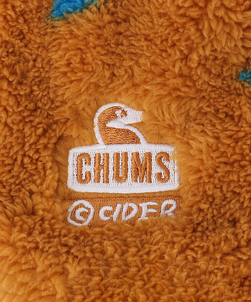 CHUMS定番のボンディングフリース素材を、かせきさいだぁ氏描きおろしの総柄「Pattern」で仕立てた特別なカフゲイター。指先を覆わないフィンガーレスタイプで、着用したままスマートフォンやタブレットの操作も快適。甲部分にはCHUMSロゴと©CIDERの刺繍をあしらい、コラボならではの特別感をプラスしています。