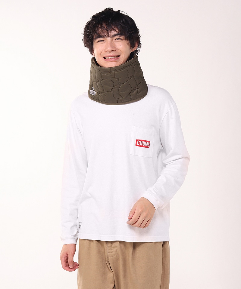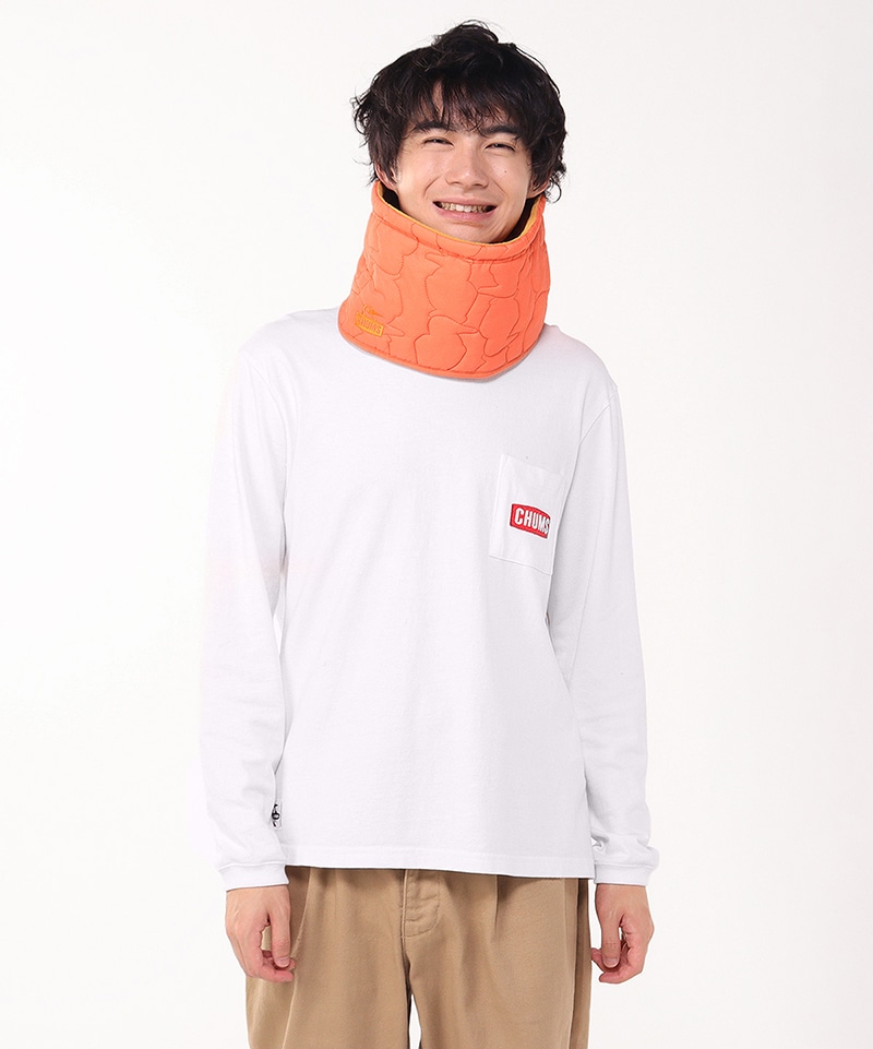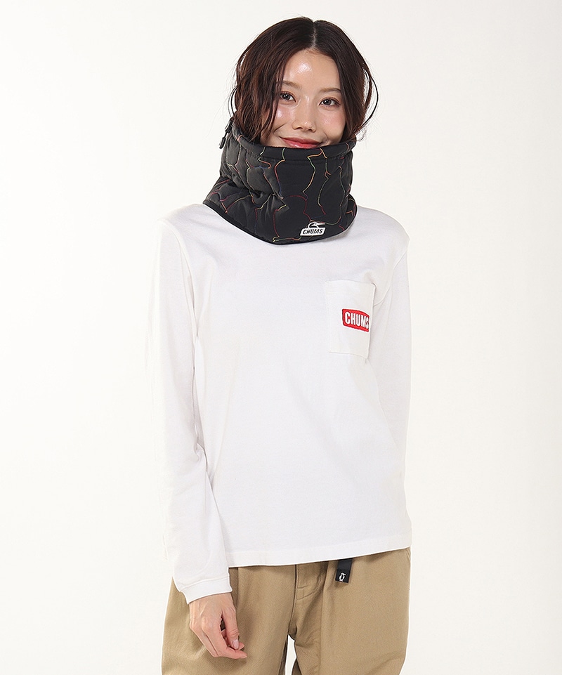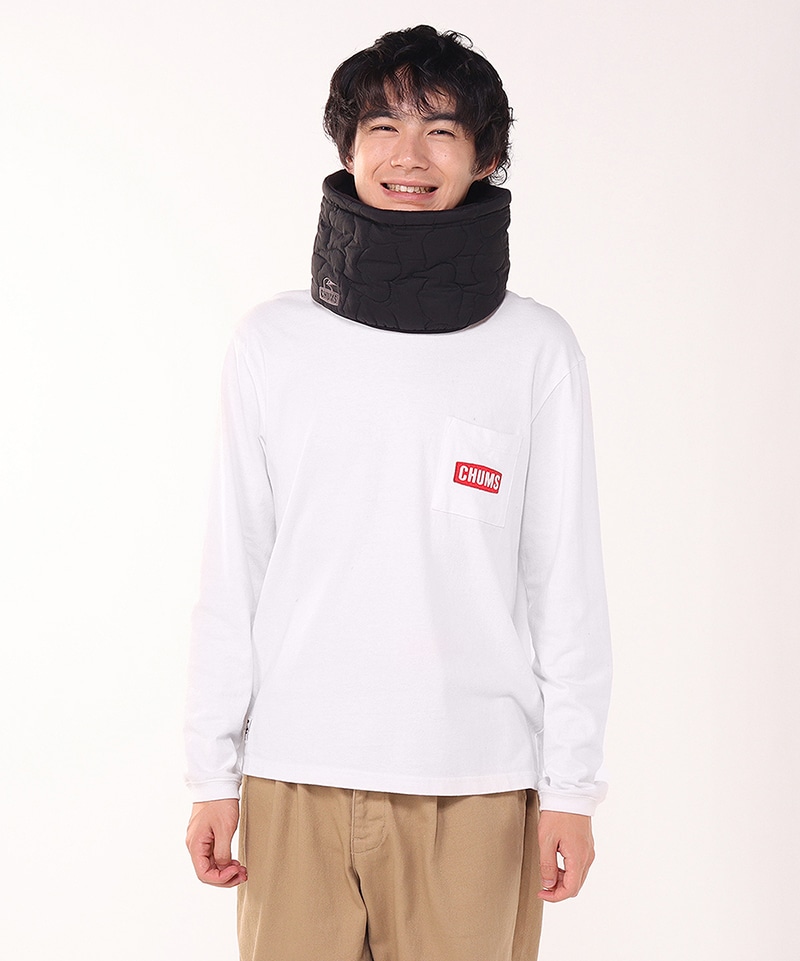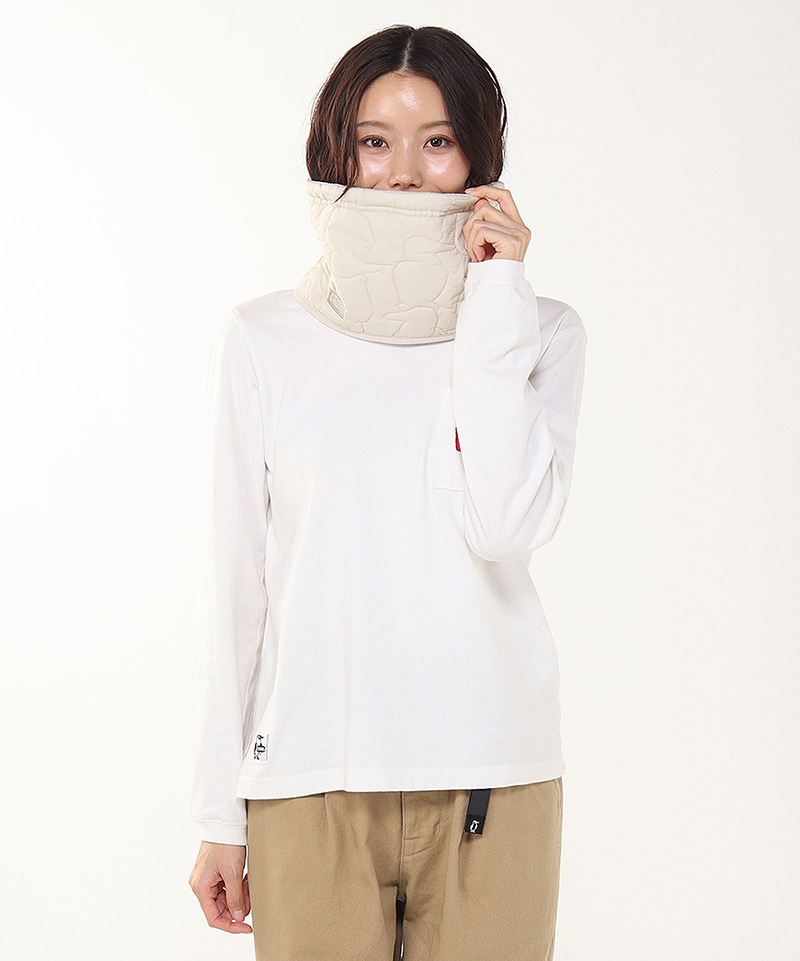 ブービーバードのシルエットをキルティングで表現し、カジュアルな雰囲気に仕上げた中綿入りネックウォーマー。後面のドローコードでフィット感を調節でき、首元をしっかりとカバー。コンパクトな設計で持ち運びもしやすく、季節の変わり目の温度調整にもぴったりです。