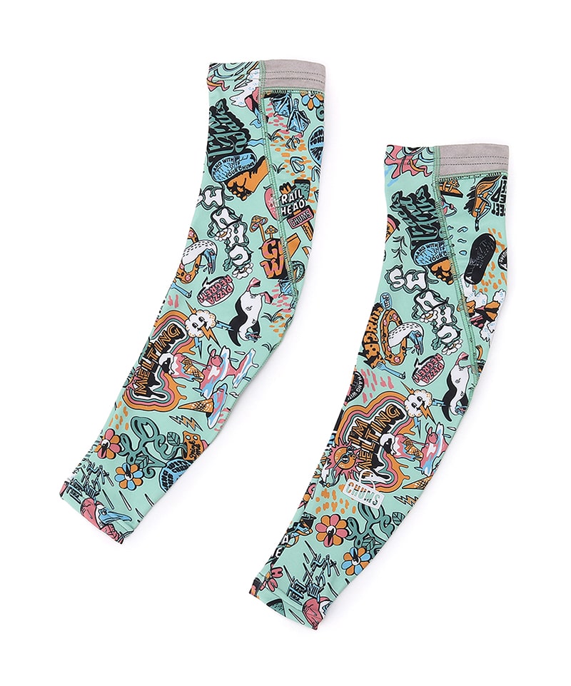 シーズングラフィックをプリントした、総柄のアームカバー。3D設計により、腕の動きにフィットしてスムーズに曲げ伸ばしが可能。アクセントにブービーフェイスロゴのリフレクタープリントを施し、夜間の視認性にも配慮しました。