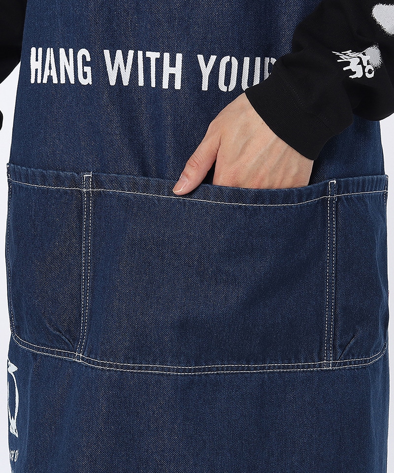 ステンシルアーティスト“守矢 努氏”によるデザインを落とし込んだワークエプロン。守矢氏本人がステンシル制作時に必ずエプロンを着用していることから、使い勝手を考慮したポケット配置など、実体験に基づくフィードバックを反映したこだわりのデザインです。