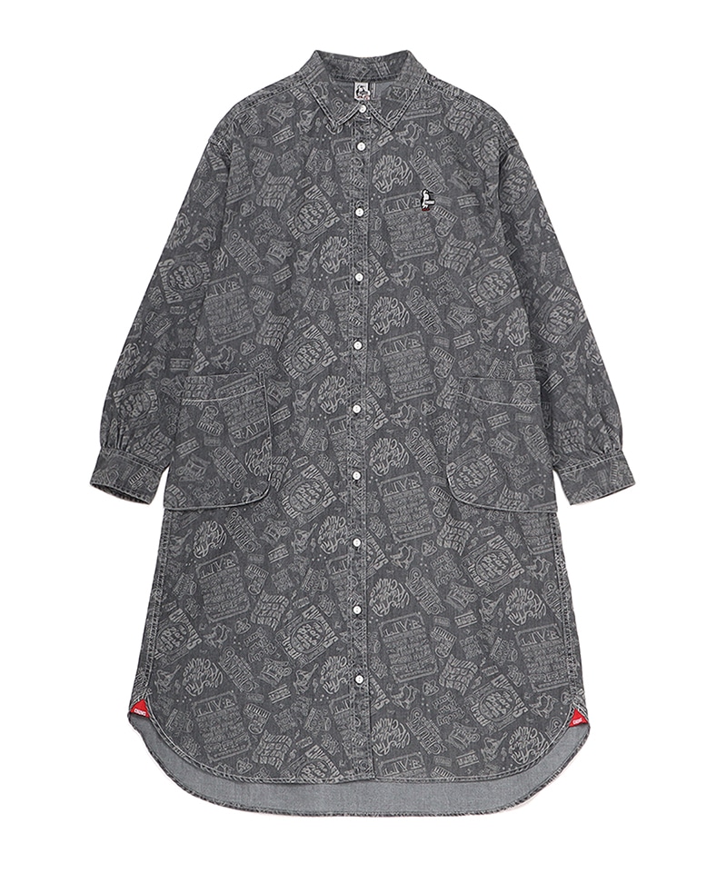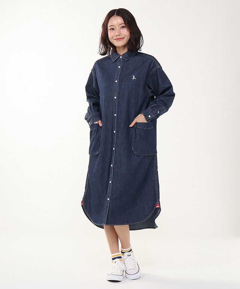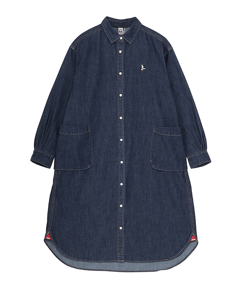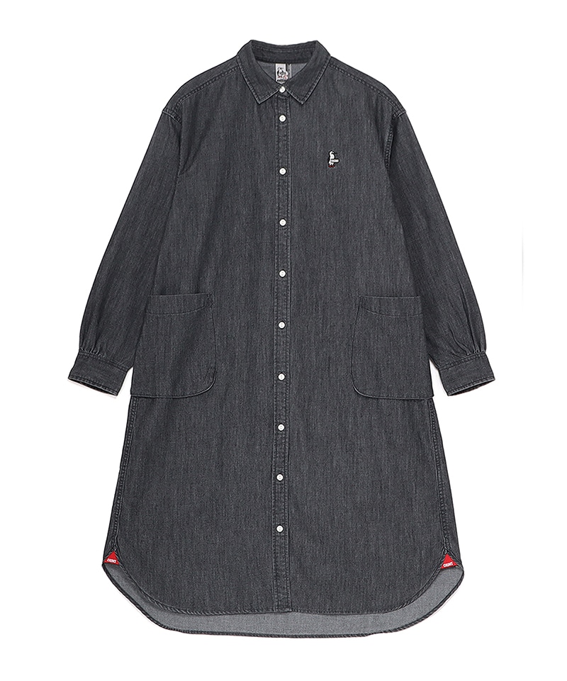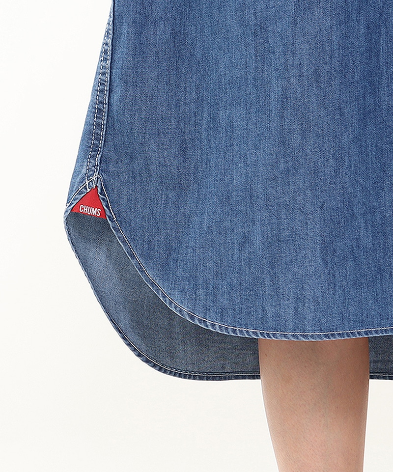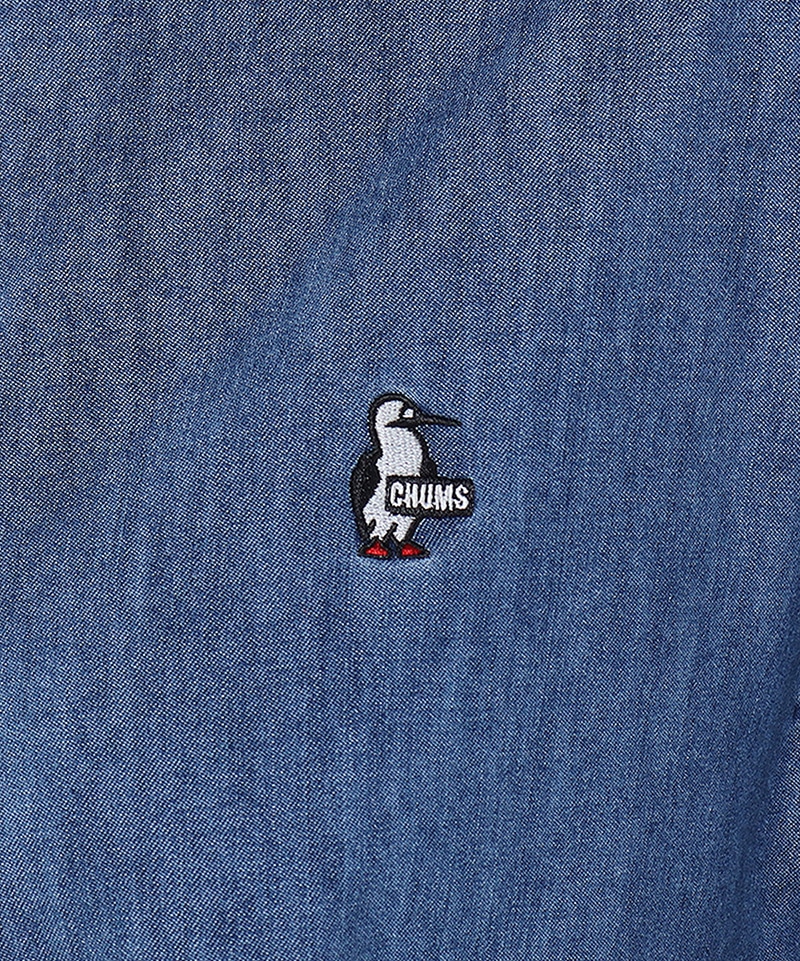 ウォームデニムを使用したデニムシャツワンピース。両サイドに大きなパッチポケット、左胸にブービーロゴの刺繍を配してカジュアルな雰囲気に仕上げました。後面には赤いハンガーループ、裾脇には“CHUMS”入りの三角マチを効かせてあそびゴコロをプラス。一枚でさらりと着るのはもちろん、ボタンを外して羽織ったり、パンツとのレイヤードもおすすめです。