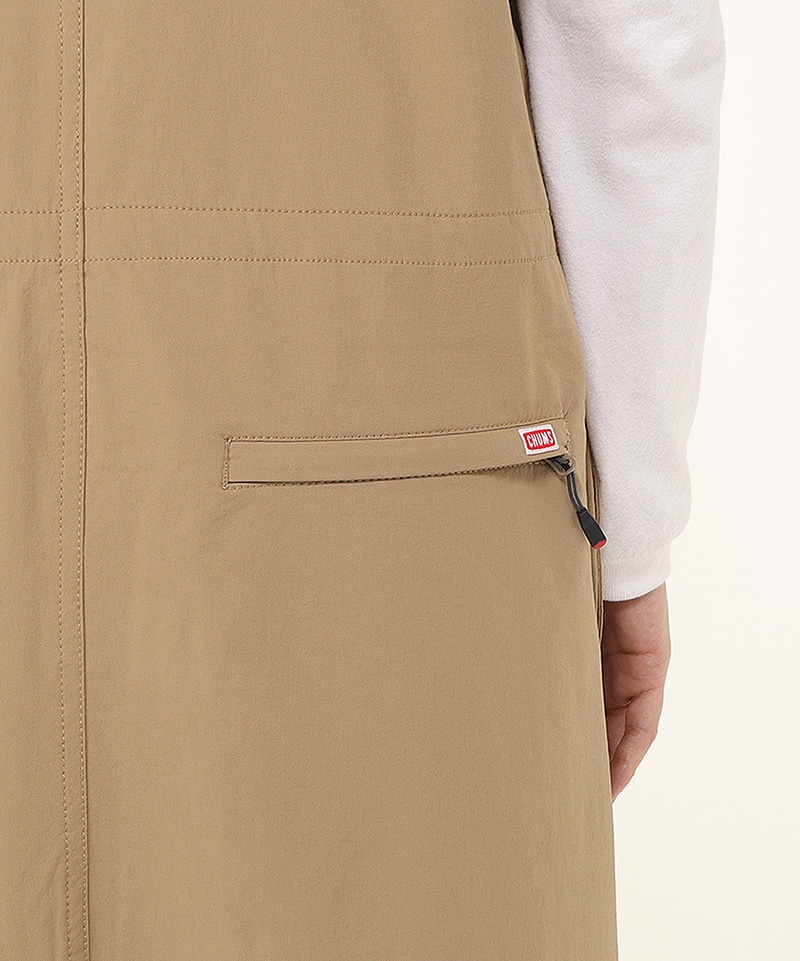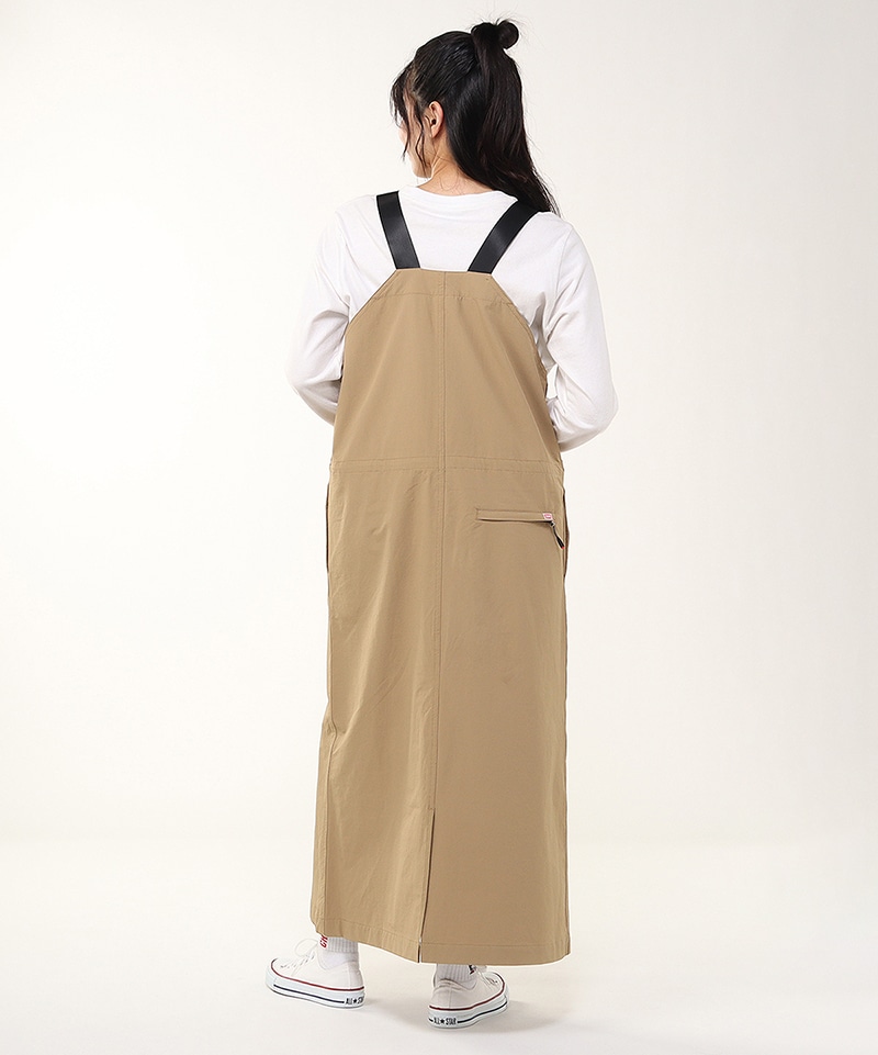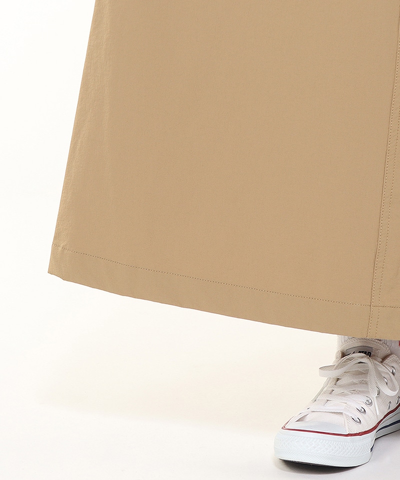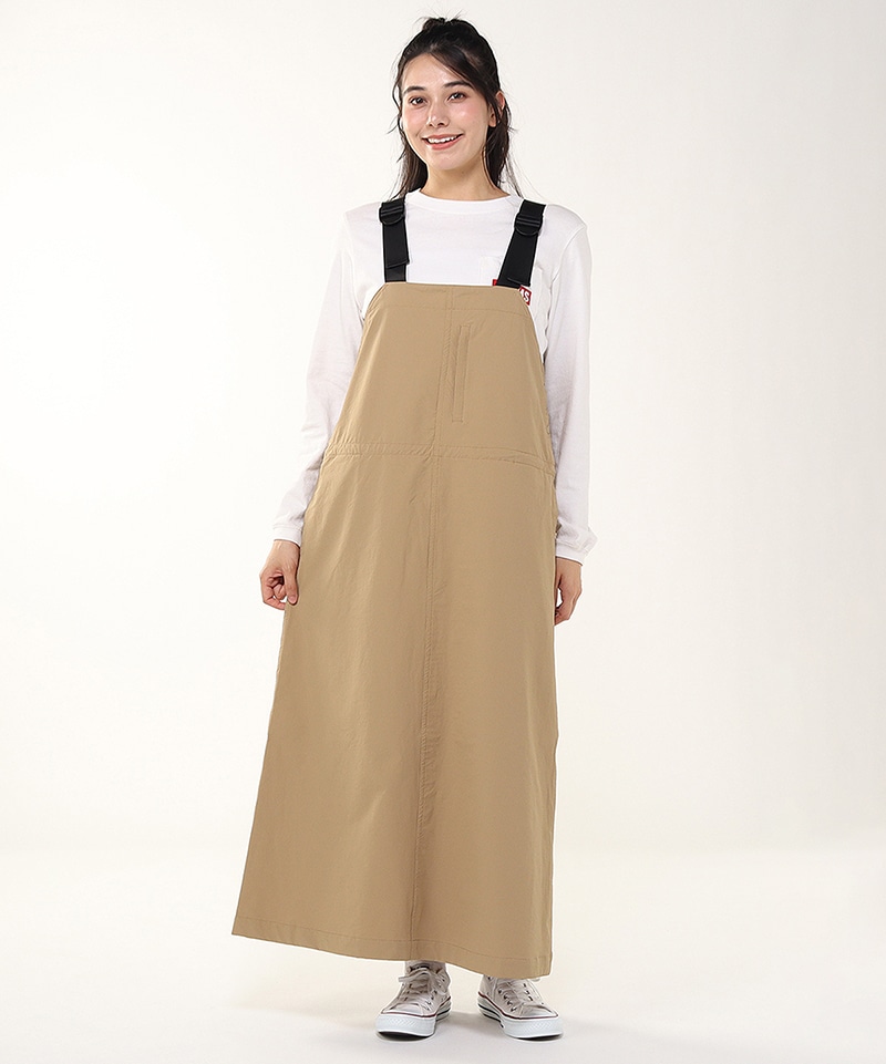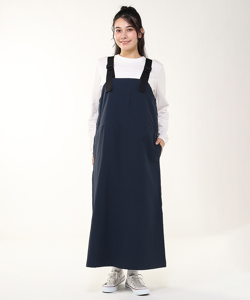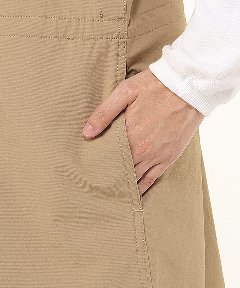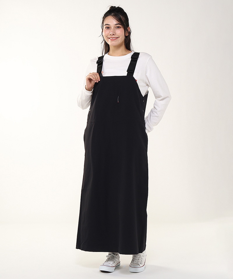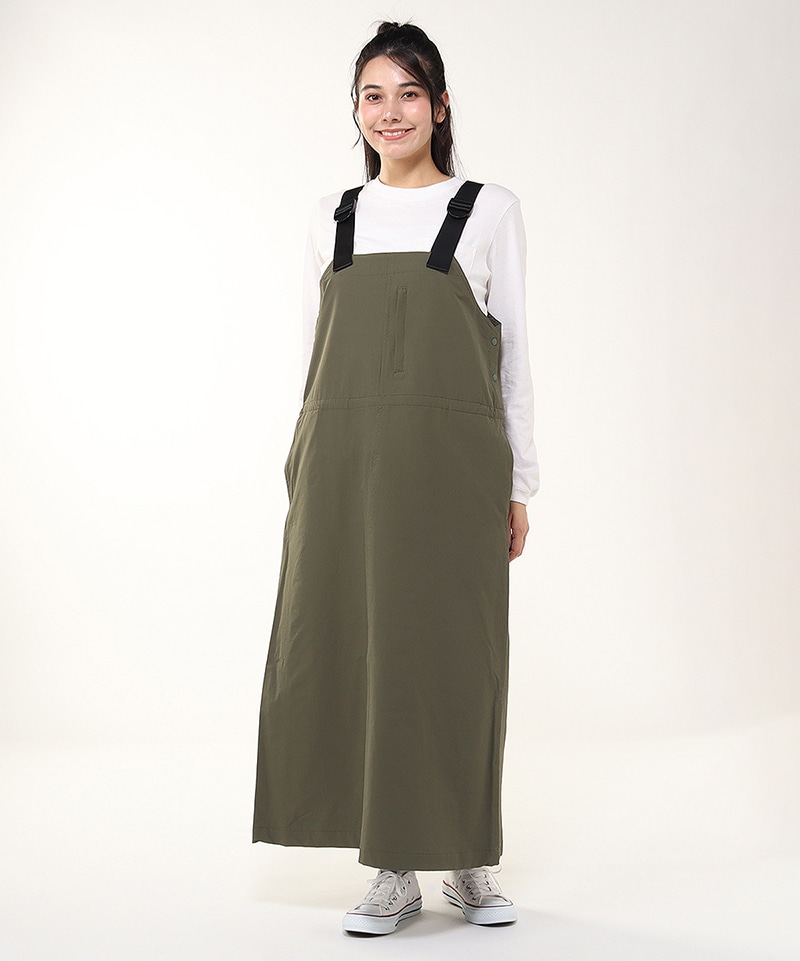 あたたかくて動きやすい、ストレッチ素材のジャンパースカート。裾にかけてほんのり広がるフレアシルエットで軽やかな足さばき。ウエストにはポケット内側から調整できるドローコード付きで、好みに合わせてシルエットの変化を楽しめるのもポイント。撥水機能も備えており、アクティブなシーンにも頼れる一着です。