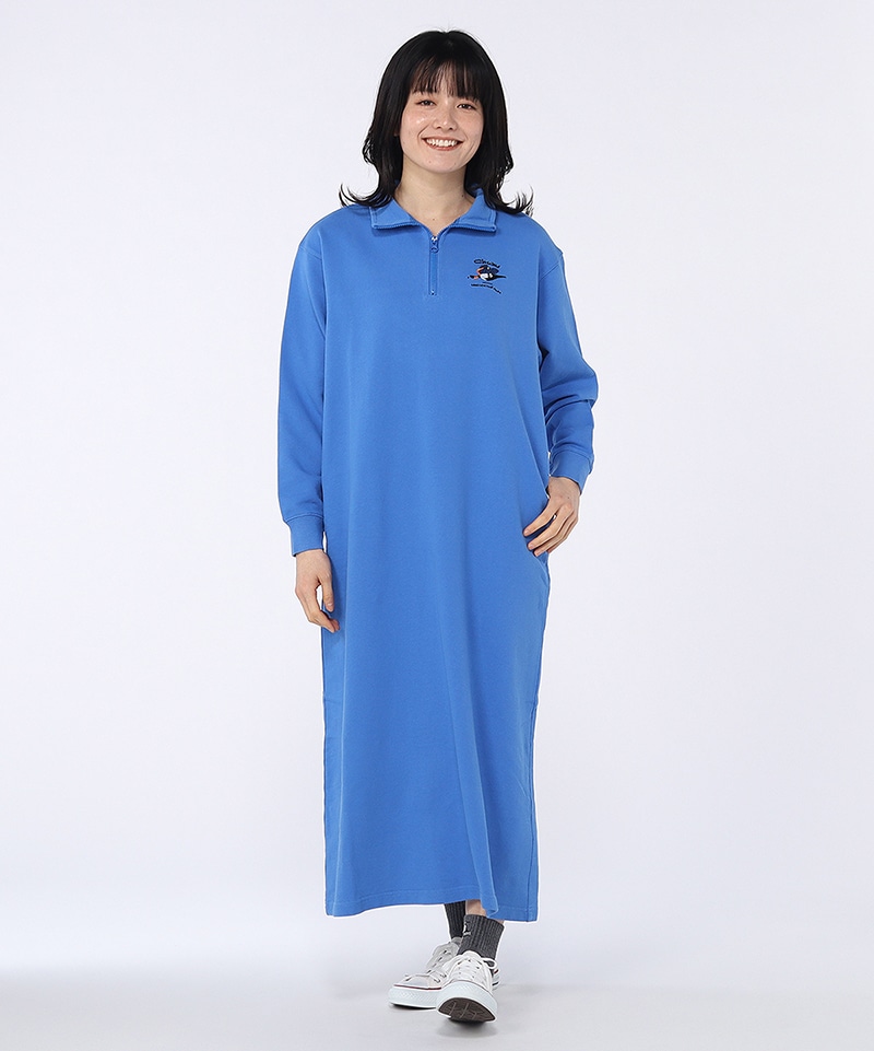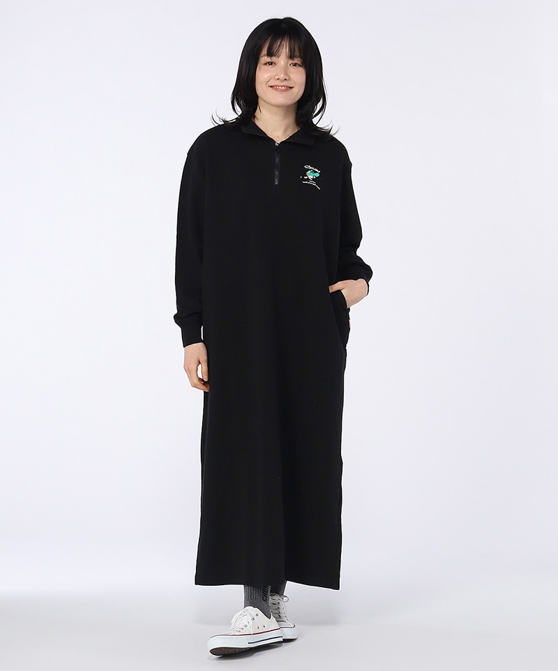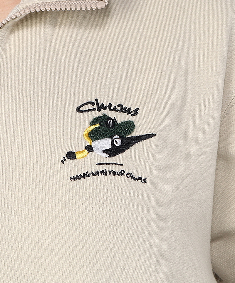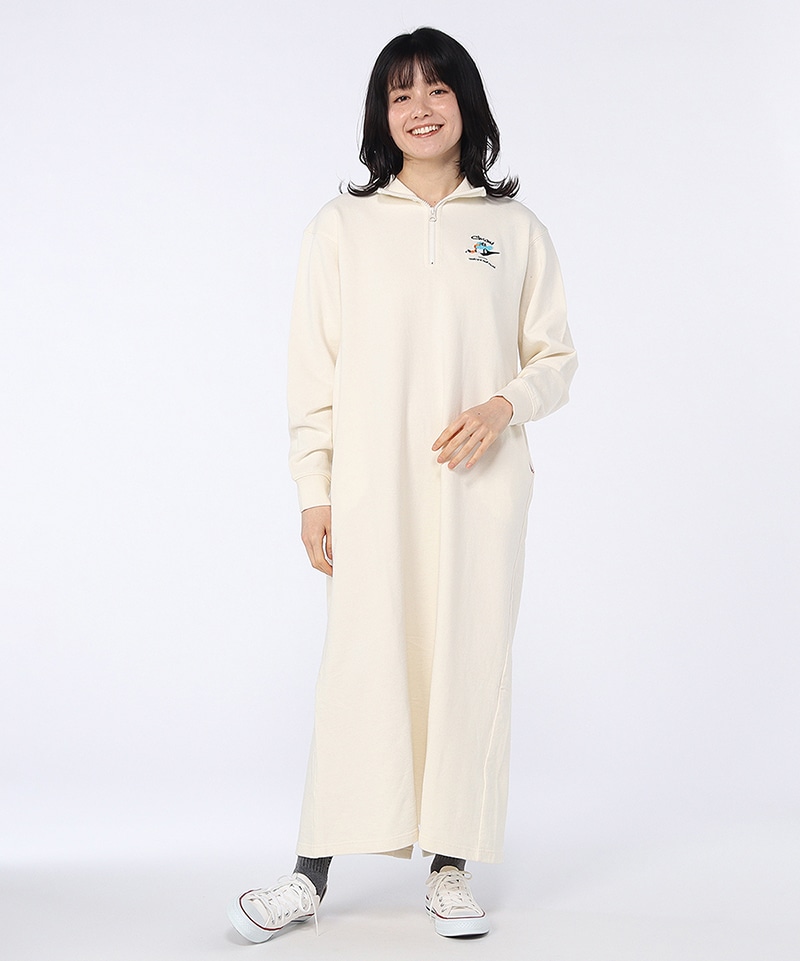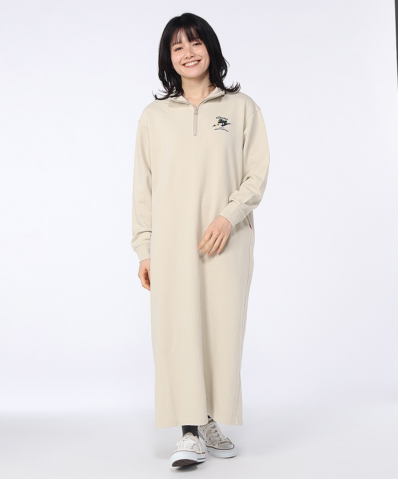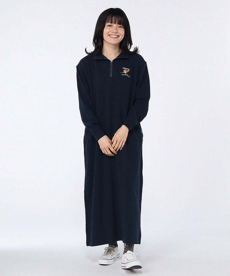 “Made for Fun!” をテーマに、CHUMSらしいあそびゴコロのある刺繍をあしらったハーフジップワンピース。部分的に相良刺繍を採用し、さりげない立体感を加えています。
