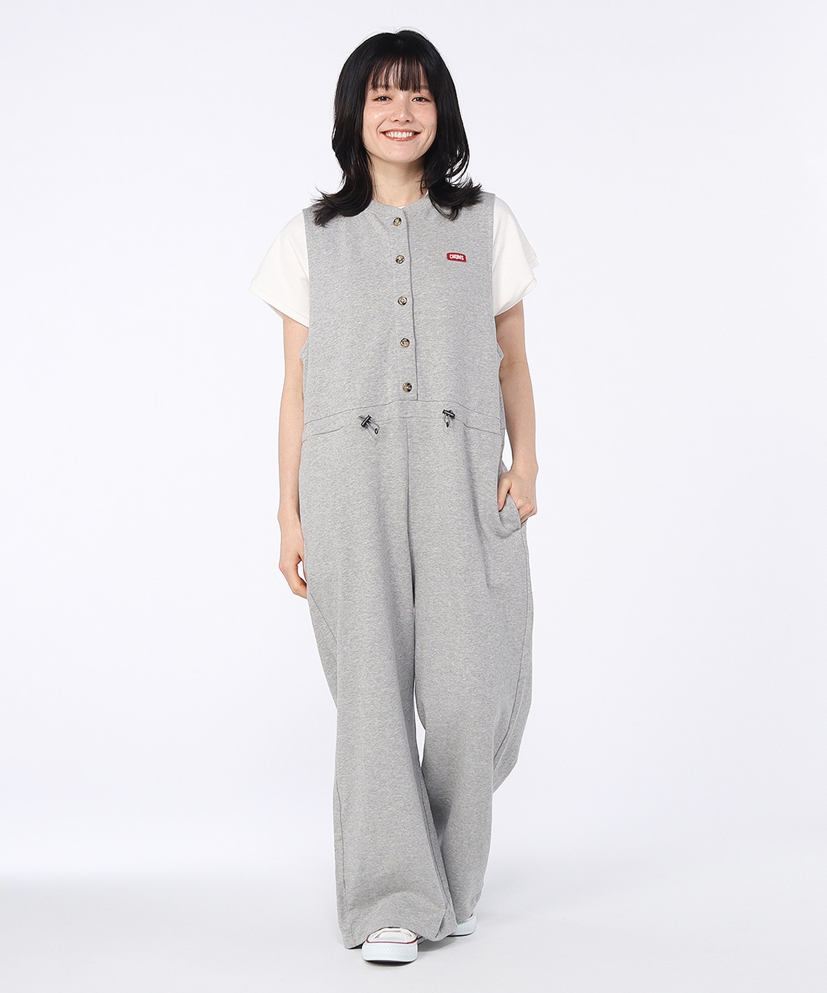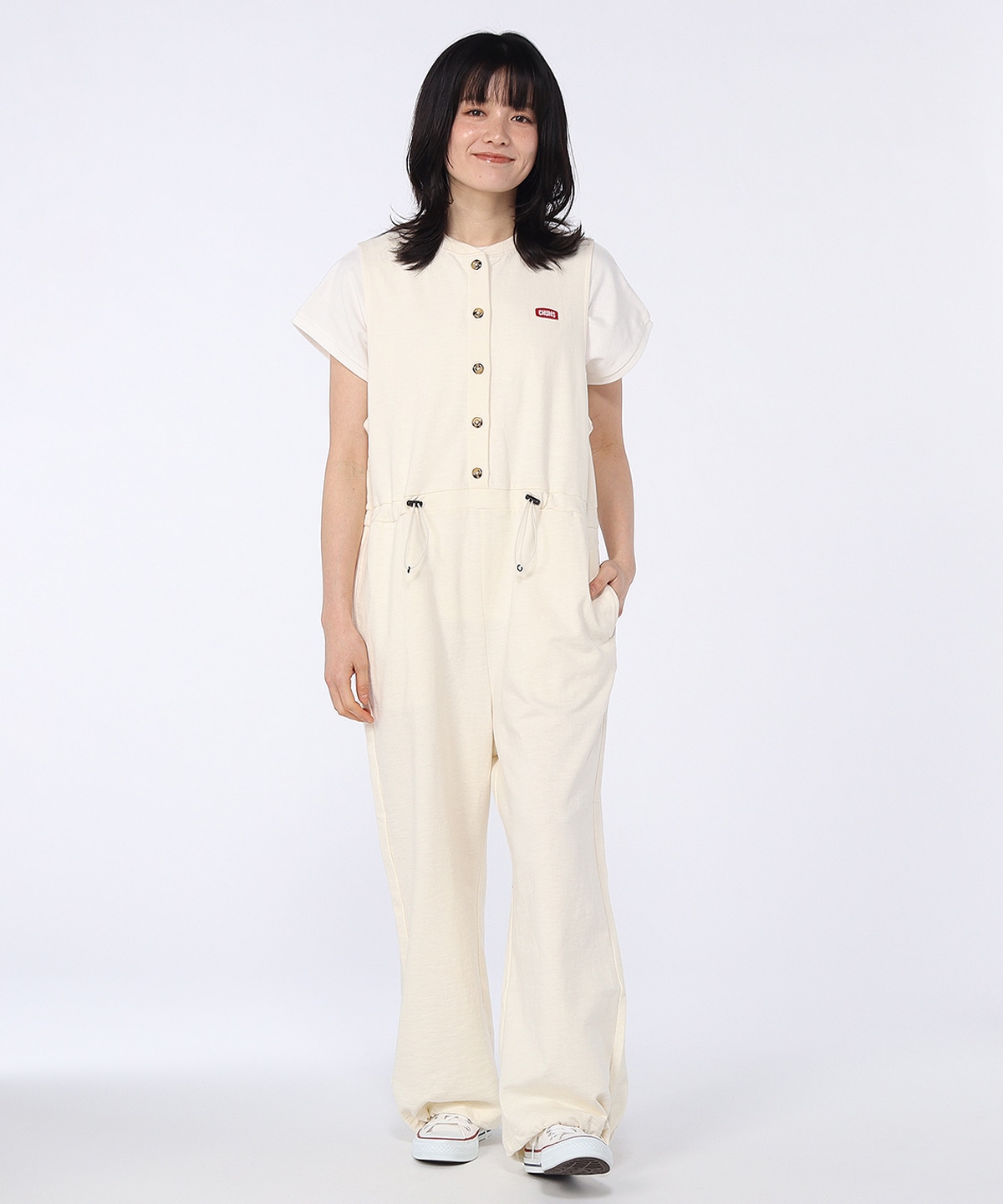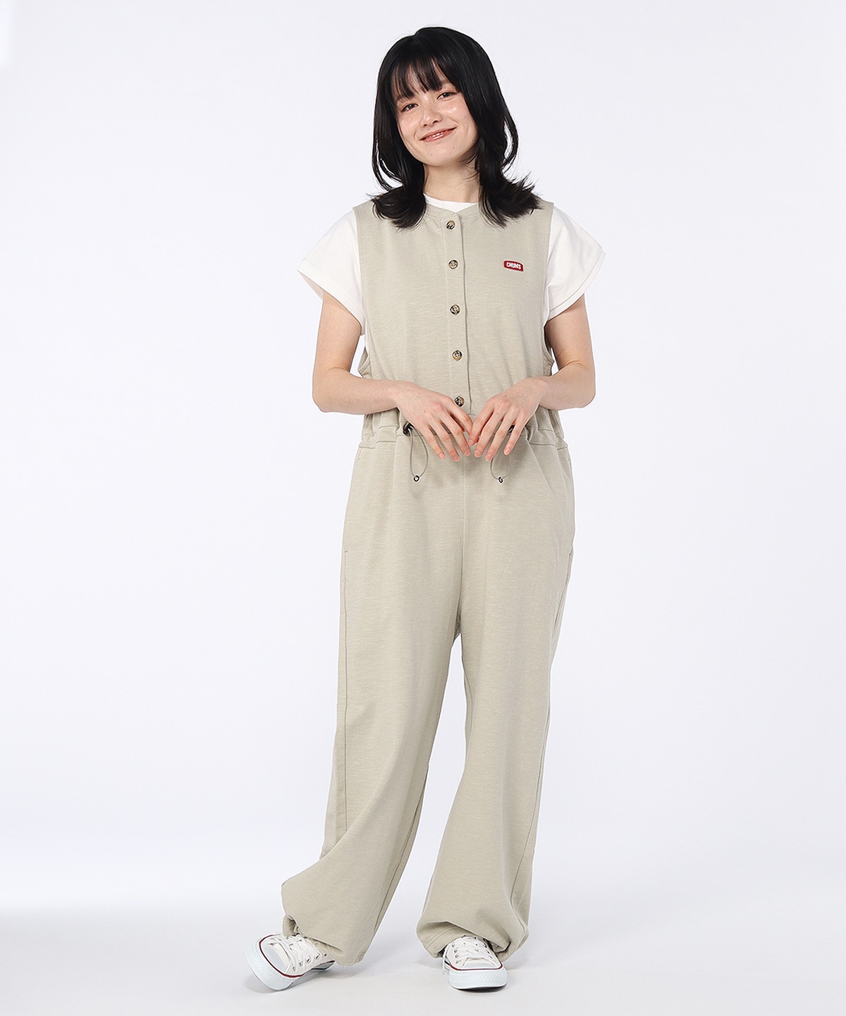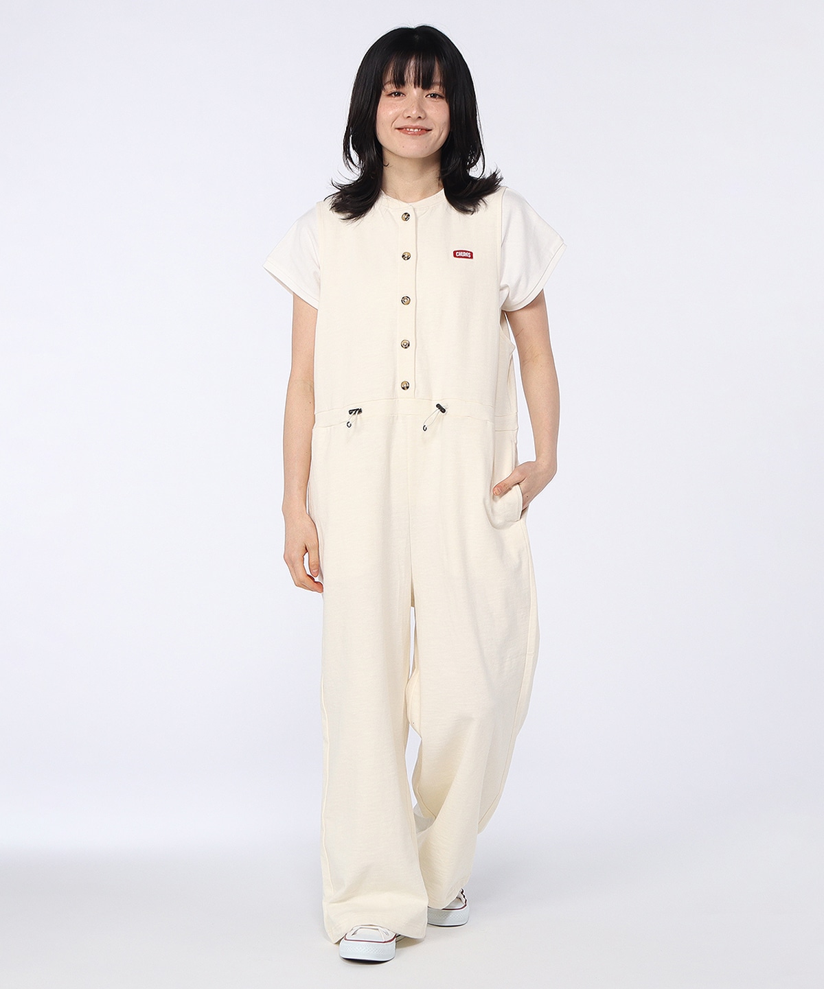 気軽にレイヤードスタイルを楽しめる、フレンチスリーブとスウェットオールインワンのセットアイテム。ウエストと裾にはドローコードを配し、シルエットの調整が可能です。オールインワン左胸のロゴワッペンが、さりげないアクセントに。それぞれ単体使いもでき、手持ちの服との合わせも楽しめます。