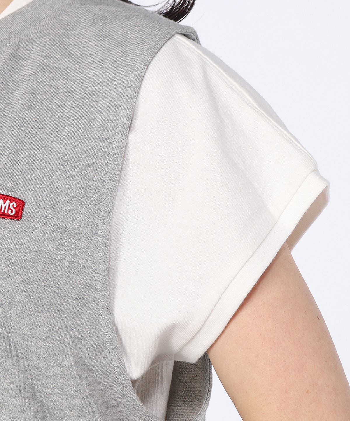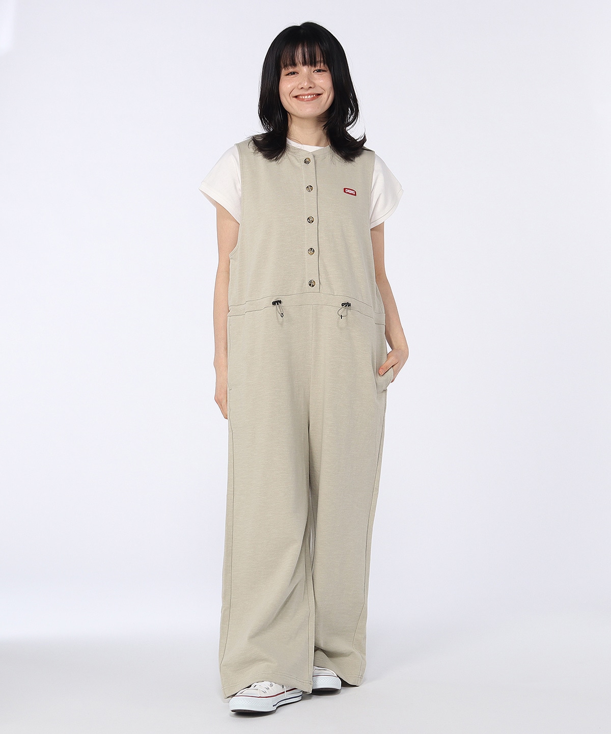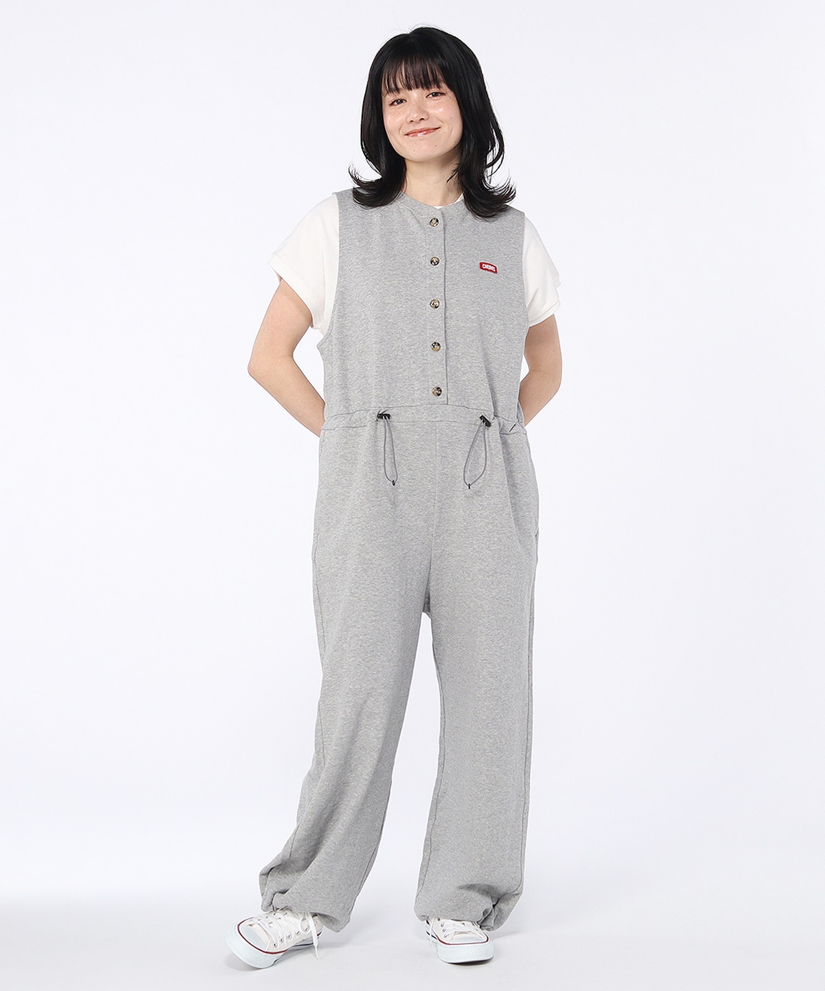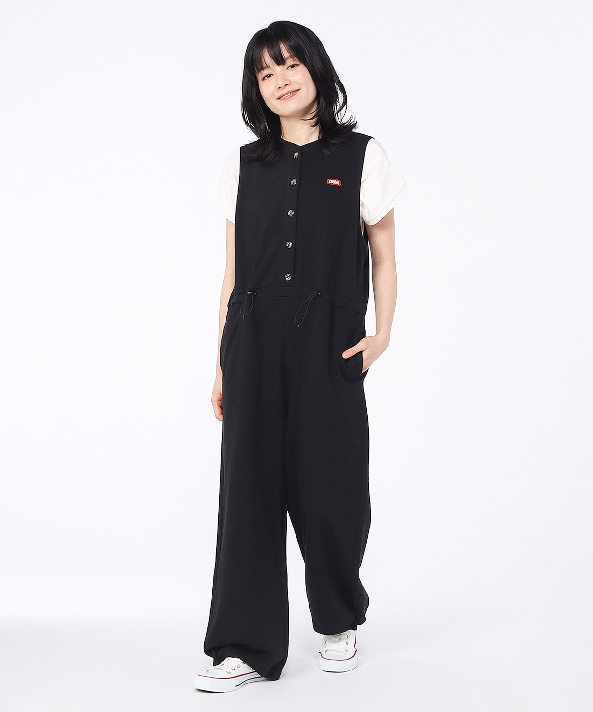 気軽にレイヤードスタイルを楽しめる、フレンチスリーブとスウェットオールインワンのセットアイテム。ウエストと裾にはドローコードを配し、シルエットの調整が可能です。オールインワン左胸のロゴワッペンが、さりげないアクセントに。それぞれ単体使いもでき、手持ちの服との合わせも楽しめます。