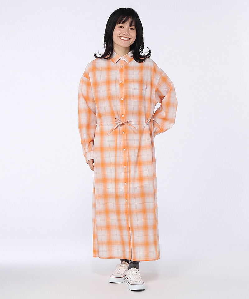 Light Weight Long Shirt One-Piece/ライトウェイトロングシャツワンピース(ワンピース)(Womens M Orange Check): ワンピース|スカートCHUMS(チャムス)|アウトドアファッション公式通販のページです。アウトドアファッションブランド、CHUMS(チャムス)の公式通販サイト。