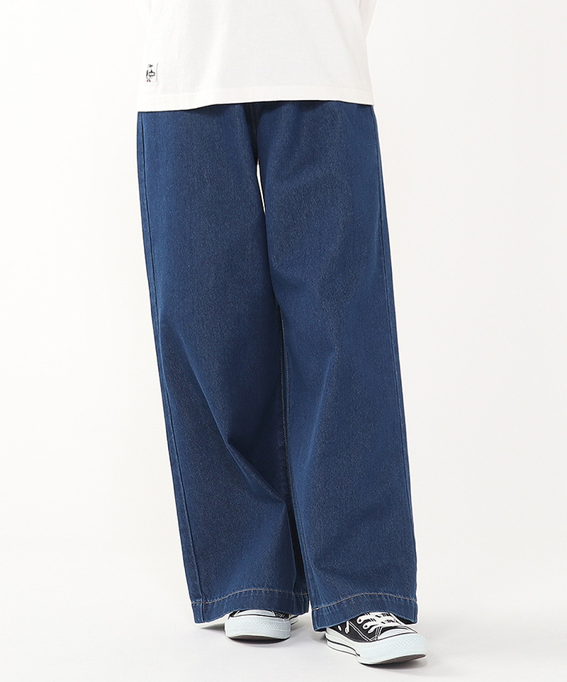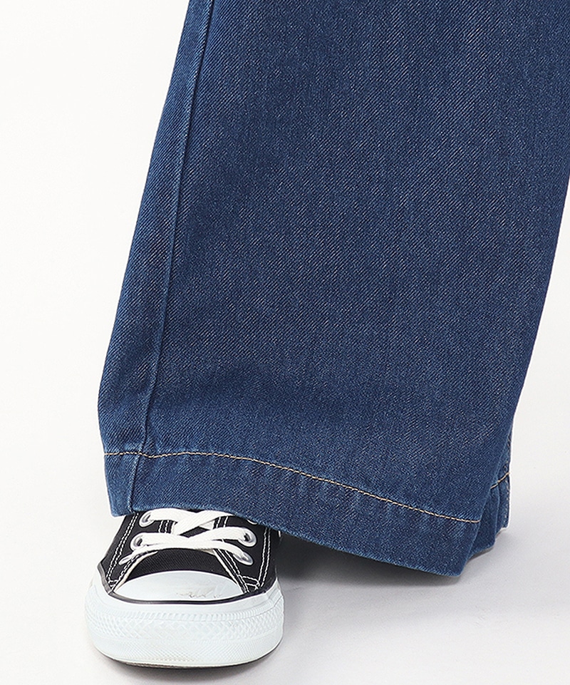 女性らしいシルエットが魅力のデニム素材のワイドパンツ