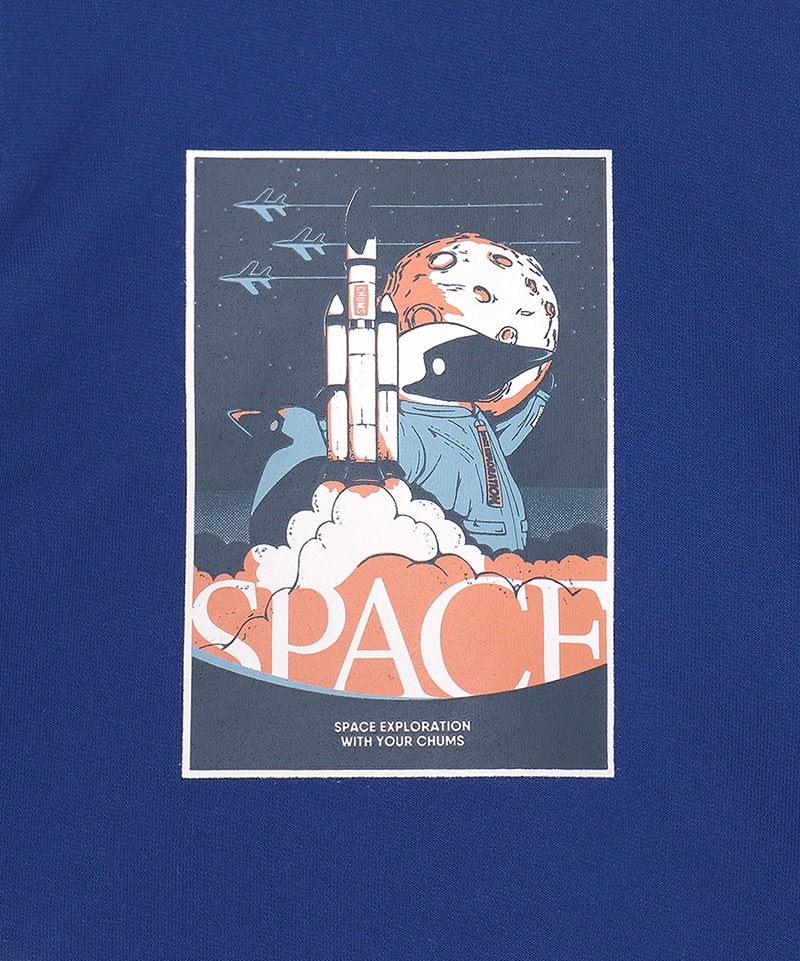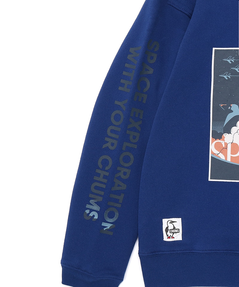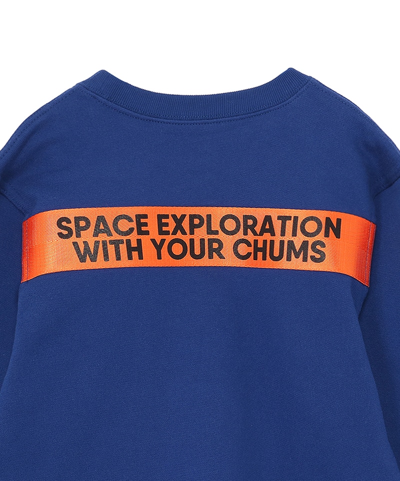 左袖にはタイベック素材のミッションバッチ、右袖にはCHUMSの合言葉をアレンジした「SPACE EXPLORATION WITH YOUR CHUMS」の文字をレイアウト。宇宙へのワクワク感を詰め込んだ、あそびゴコロあふれる一枚です。