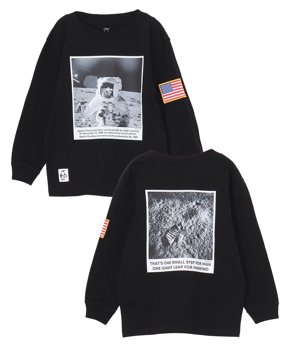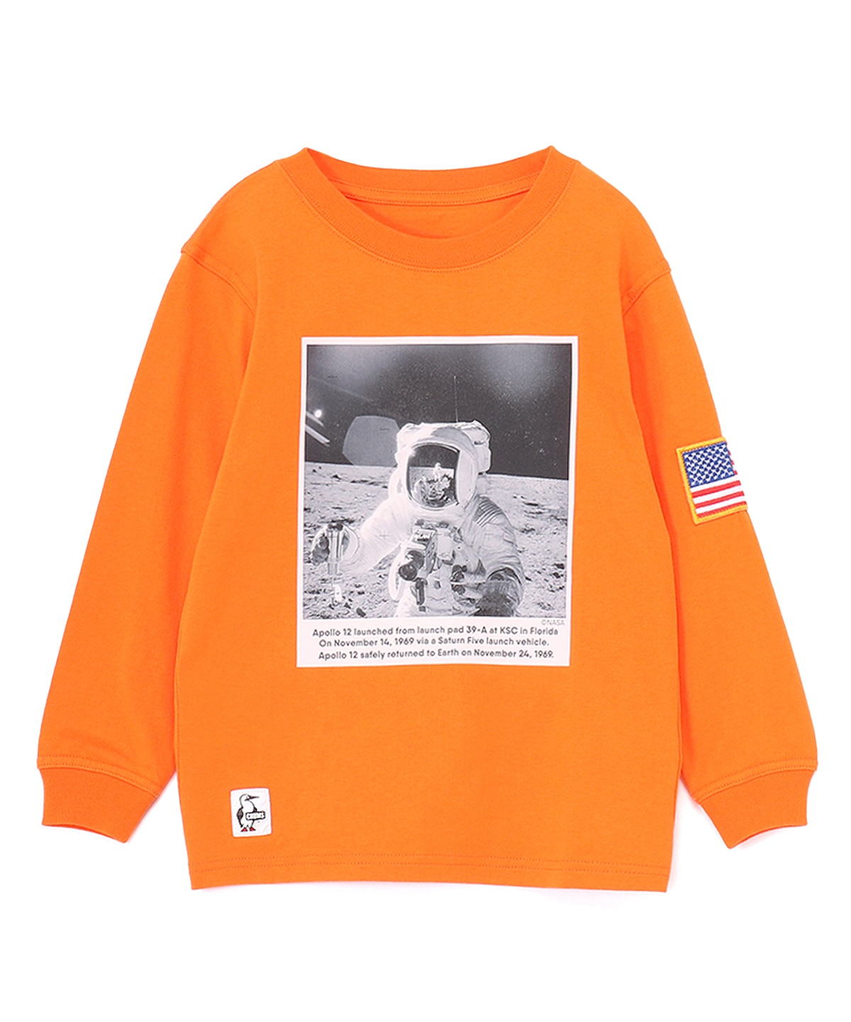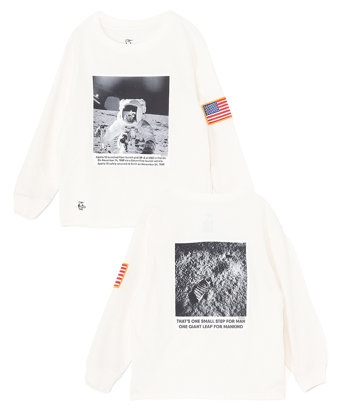 アポロ11号の月面着陸写真をあしらった、ロマンあふれるロングスリーブTシャツ(キッズサイズ)