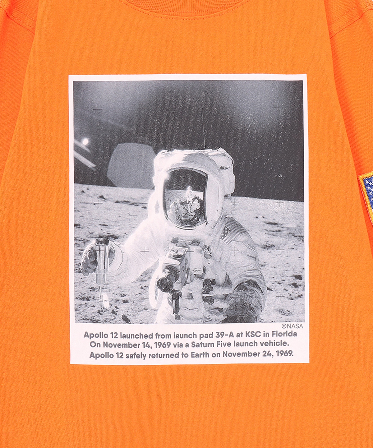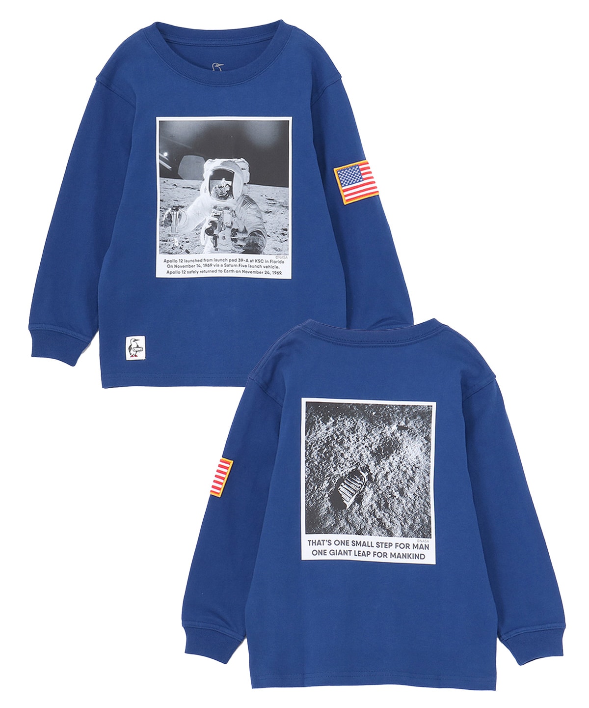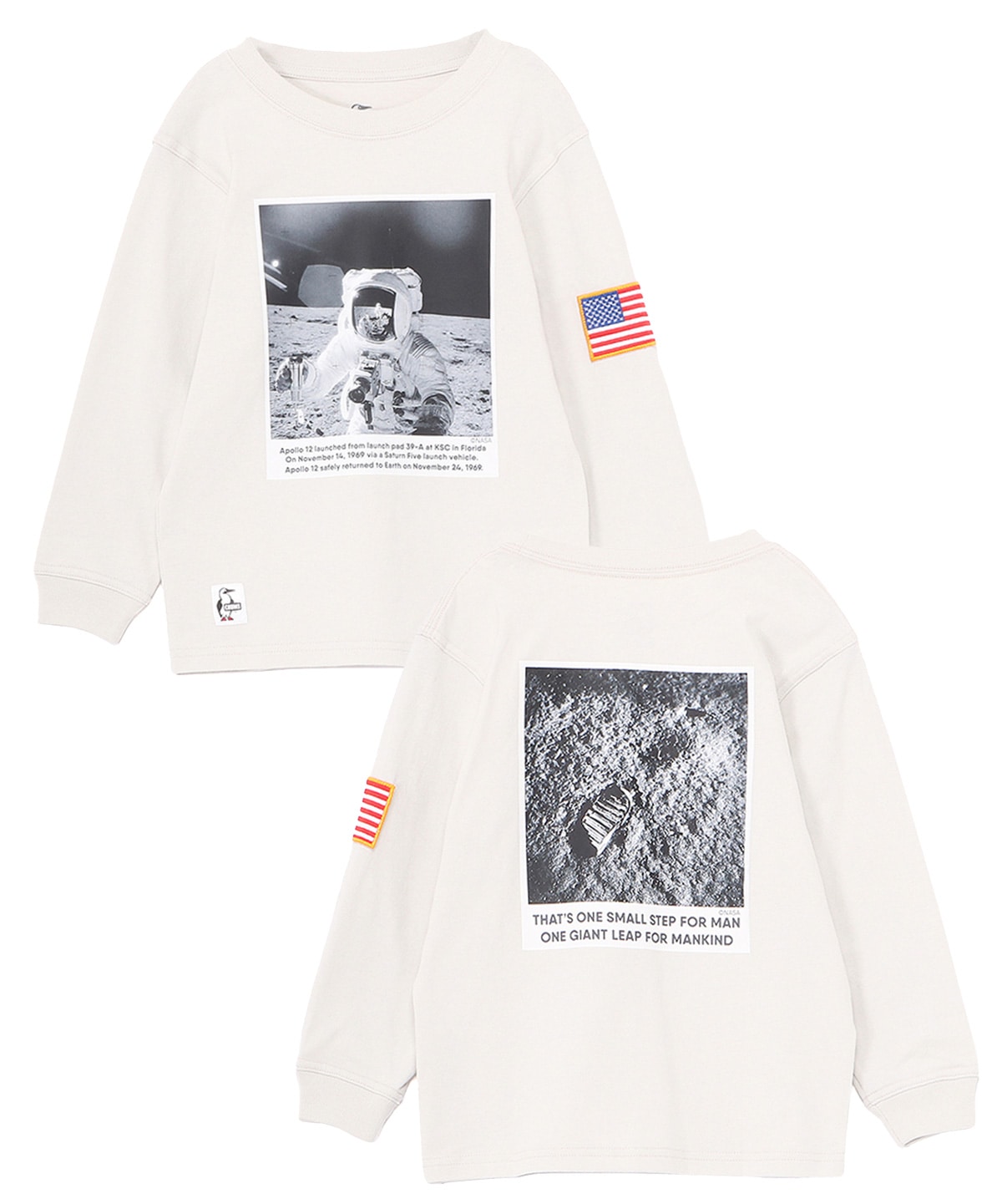 アポロ11号の月面着陸写真をあしらった、ロマンあふれるロングスリーブTシャツ(キッズサイズ)