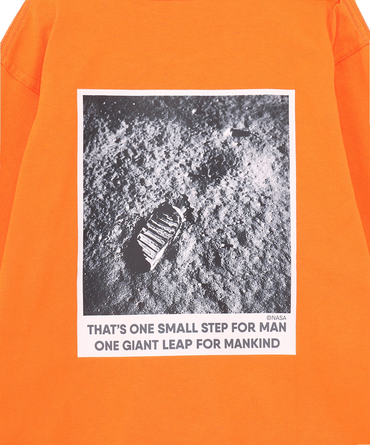 ゆったりとしたオーバーサイズシルエットのロングスリーブTシャツ。フロントには、アポロ11号の月面着陸時に撮影された実際の写真をレイアウト。背面には、「That's one small step for man, one giant leap for mankind(これは一人の人間にとっては小さな一歩だが、人類にとっては大きな飛躍である)」という有名な言葉とともに、月面に残された人類の足跡をデザインしました。