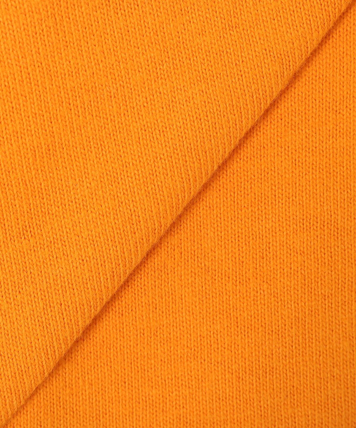 タフな空紡糸で編んだコットン100%を使用。耐久性に優れ、型崩れしにくいしっかりとした生地感が特徴。表面には起毛感があり、あたたかな肌触りで一枚で着やすいのも魅力です。