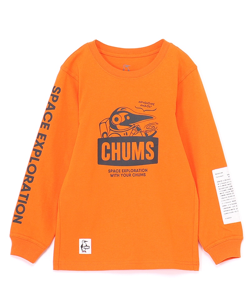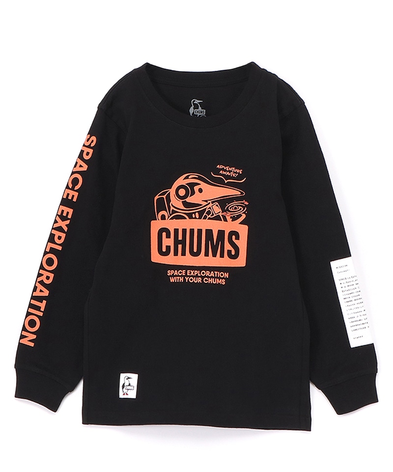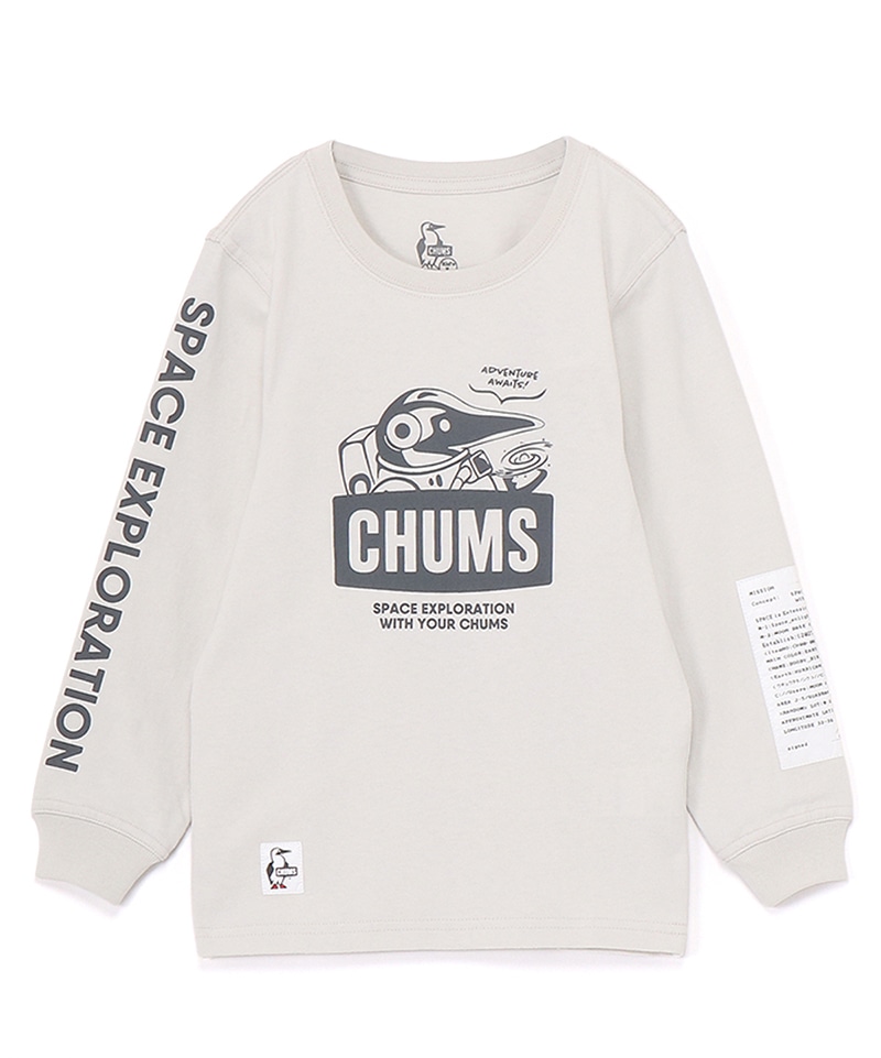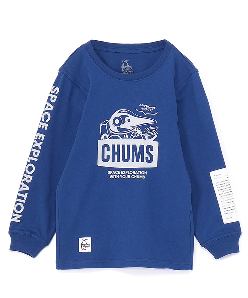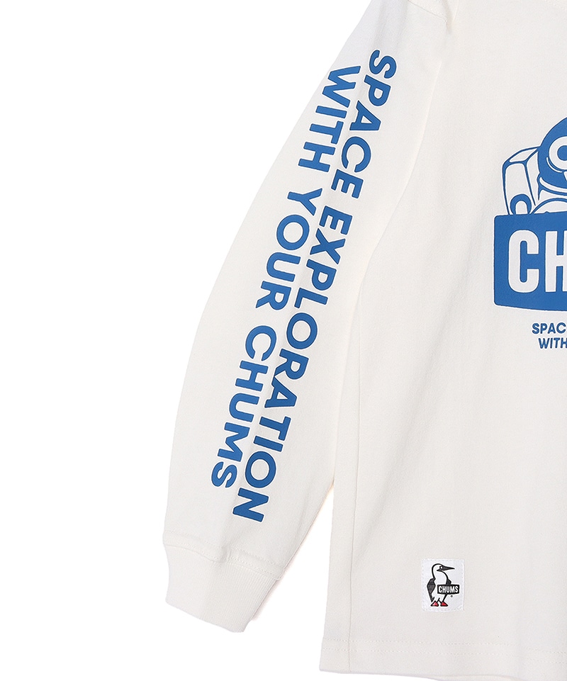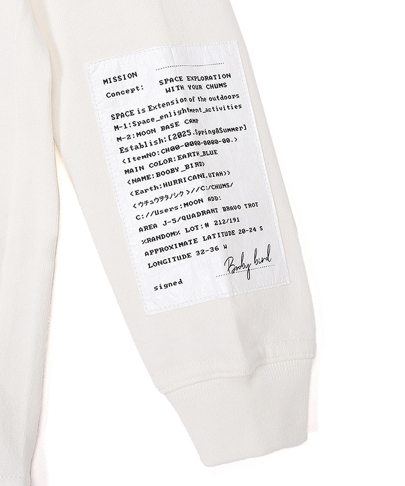 定番のブービーフェイスロゴを宇宙仕様にアレンジしたロングスリーブTシャツ。フロントには宇宙服をまとったブービーバードのロゴをあしらい、左袖にはタイベック素材のミッションバッチ、右袖にはCHUMSの合言葉をアレンジした「SPACE EXPLORATION WITH YOUR CHUMS」の文字をレイアウト。宇宙へのワクワク感を詰め込んだ、あそびゴコロあふれる一枚です。