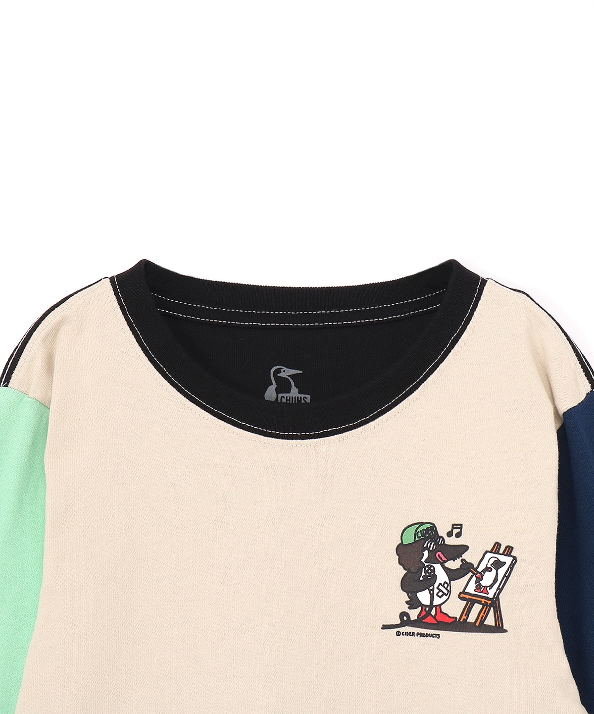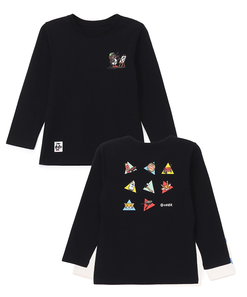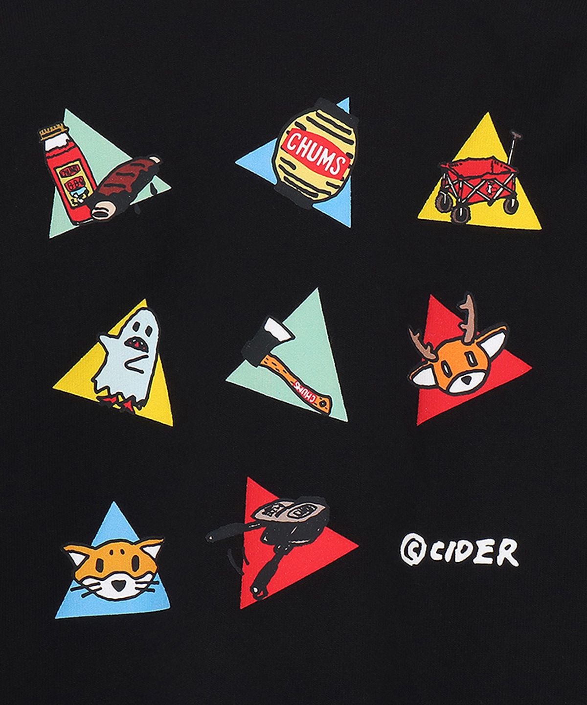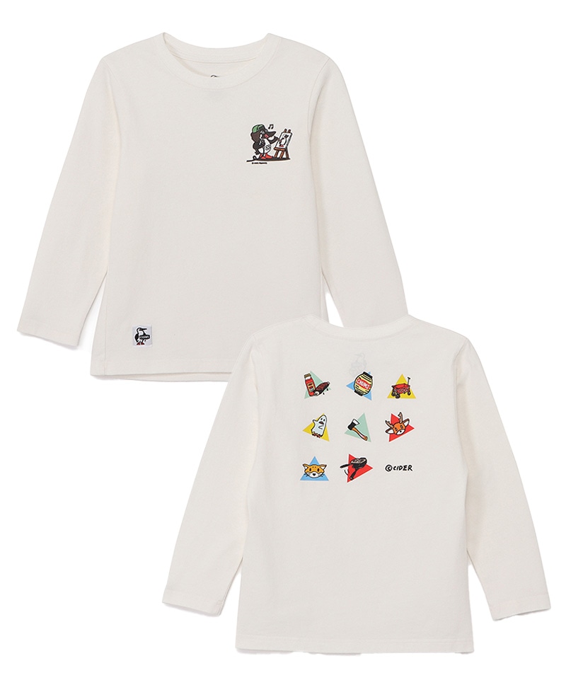 かせきさいだぁ氏描きおろしのデザイン「アラカルト2」をバックプリントに落とし込んだロングスリーブTシャツ。左胸には同氏がブービーバードになった「Booby さいだぁ」をワンポイントで配し、背面には同氏がCHUMSのシーズンテーマ『LOVE & ADVENTURE』から連想したものを描いた「アラカルト2」をプリントし、ポップな雰囲気に仕上げました。