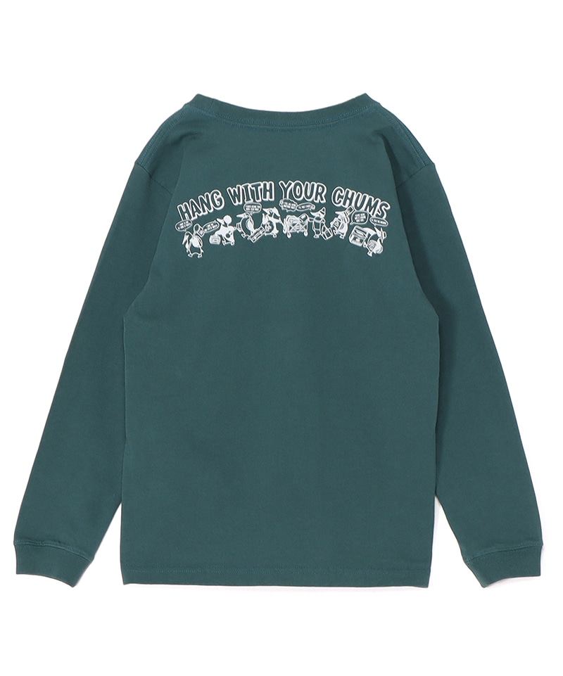 左胸にはCHUMSロゴをワンポイントで配置し、バックには虫取り網や籠を手にしたブービーバードたちが昆虫探しに出かける、楽しげなグラフィックをデザイン。背中のラインに沿わせたレイアウトが、さりげないあそびゴコロを演出します。