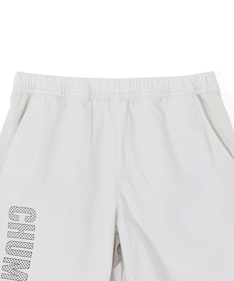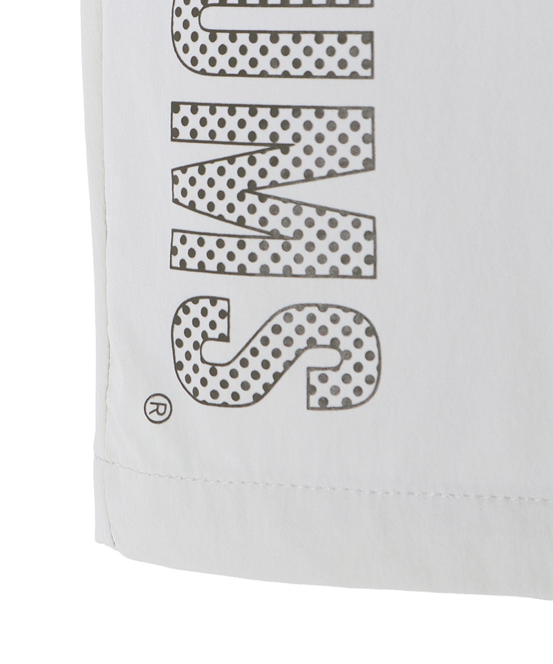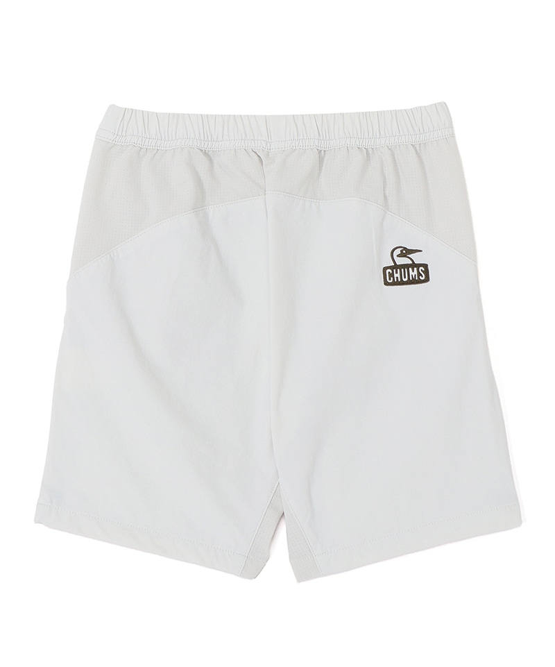 街着からスポーツまでマルチに使えるショーツ。後面にはワンポイントでブービーフェイスロゴを配し、右足部にはドット調のCHUMSロゴプリントをレイアウトしました。