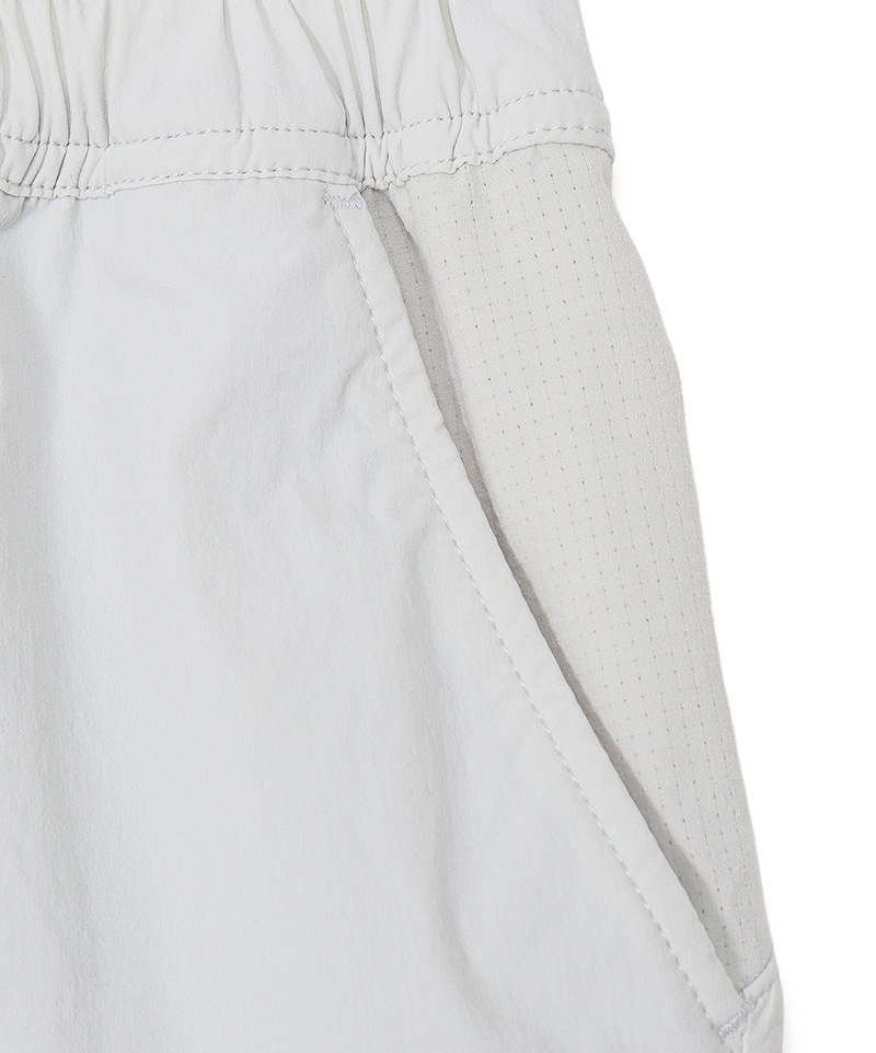 ナイロンとポリウレタンの混紡素材を使用。耐久性とストレッチ性が高く、アクティブな動きにも対応可能。蒸れやすい箇所には通気性のあるストレッチウーブンメッシュ素材を採用し、快適な穿き心地を保ちます。