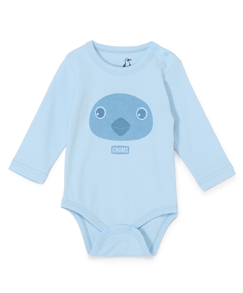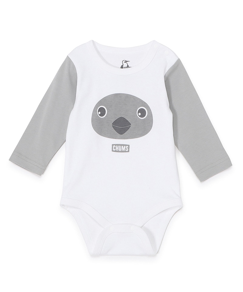 フロントにブービーバードの顔をプリントしたキュートな長袖ロンパース。愛くるしい表情が特徴的で、お子様が着ると一層可愛さが増す一枚。出産祝いの贈り物にもおすすめ。