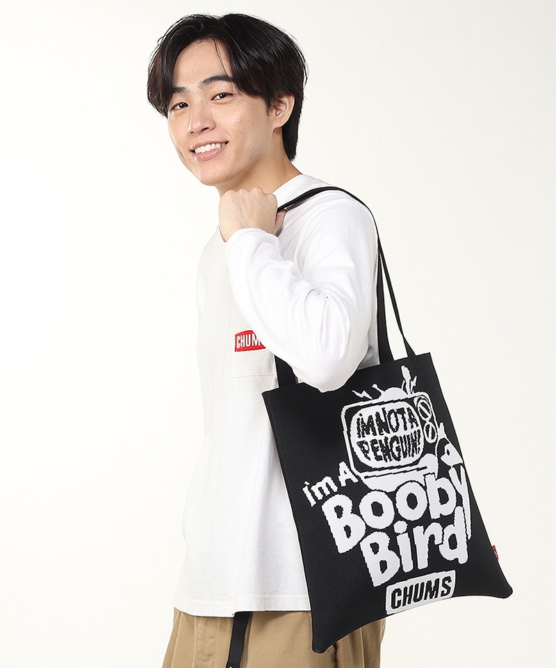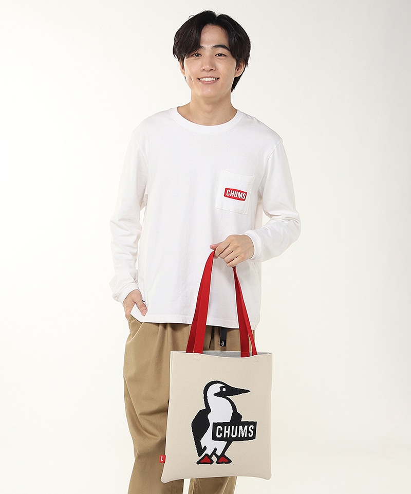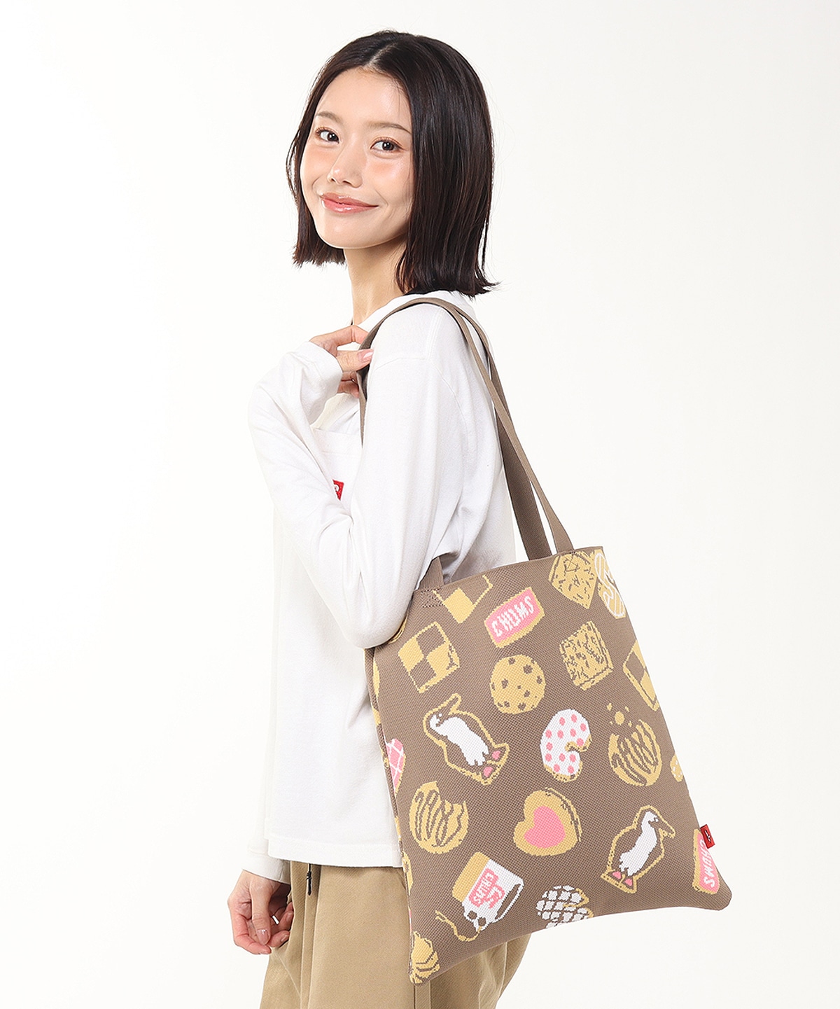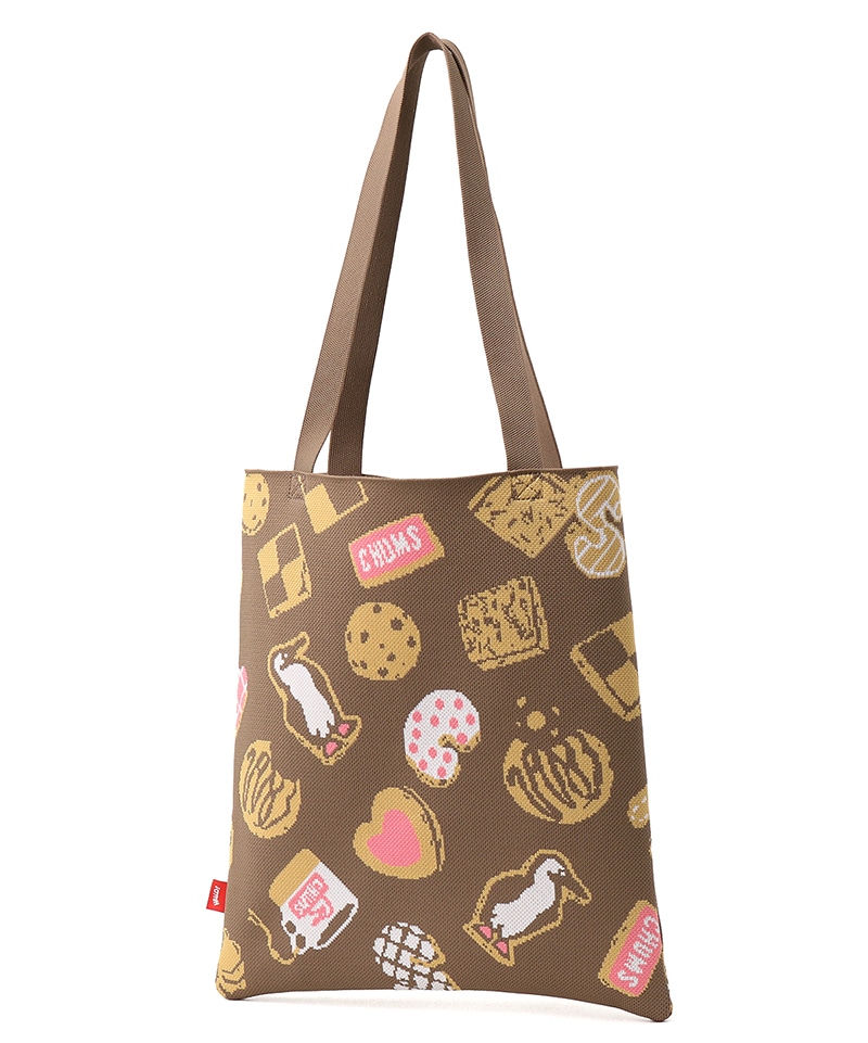 オリジナルグラフィックをあしらった、ジャカード編みのニット生地を使用。ふっくらと肉厚で伸縮性のある生地感。折りたたんで持ち運ぶこともでき、エコバッグや、サブバッグとしても活躍します。