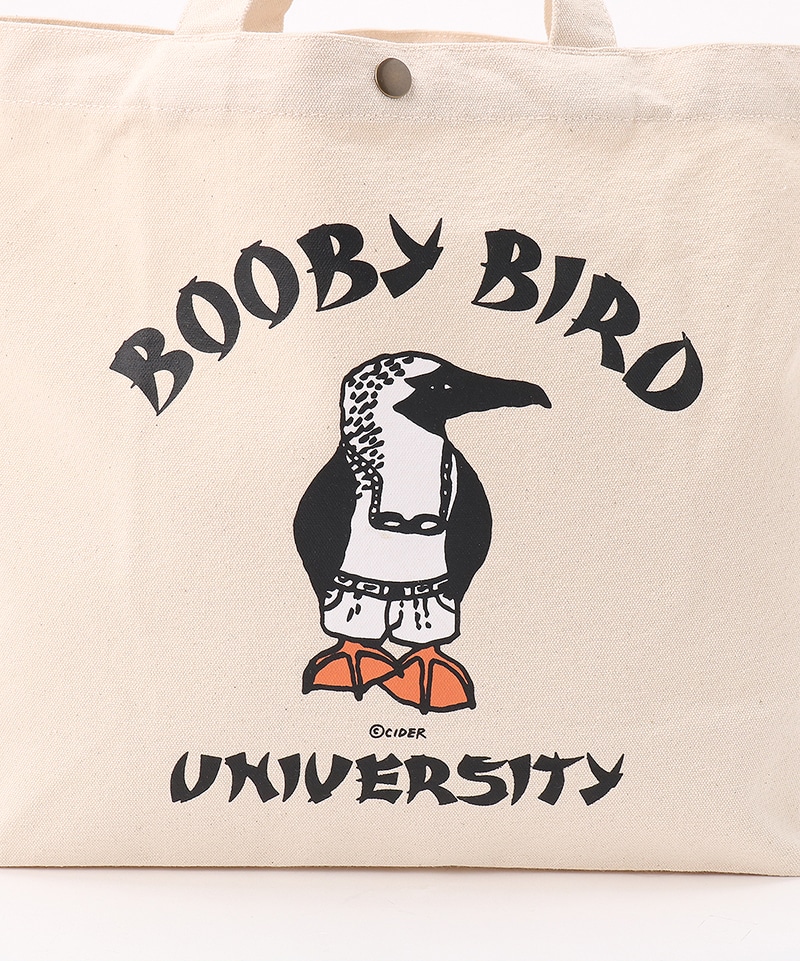 同氏が架空の大学「BOOBY BIRD UNIVERSITY」をイメージして描いたカレッジ風ロゴデザインです。ロゴの中心には同氏が描きおろした「オールドブービー」がレイアウトされています。