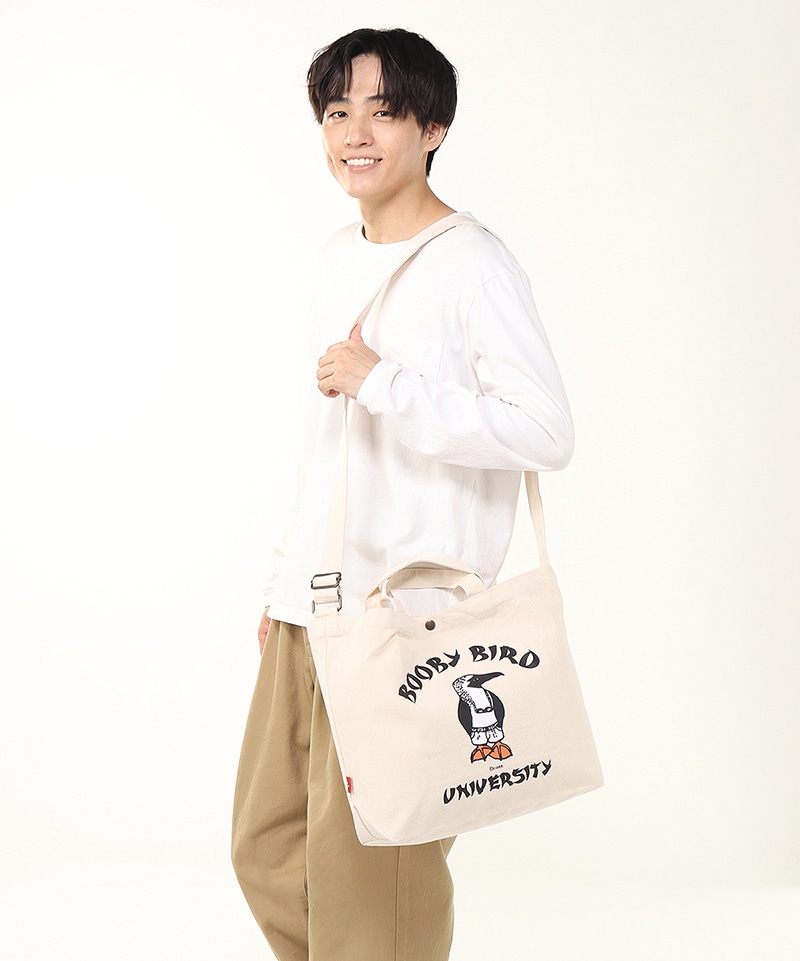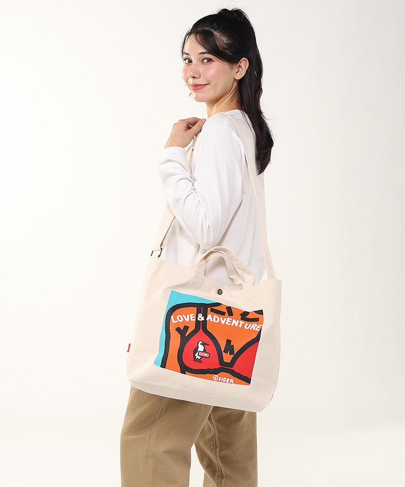 CHUMS定番の“Booby Canvas Shoulder”をベースに、かせきさいだぁ氏のデザインをあしらったキャンバスショルダーバッグ。