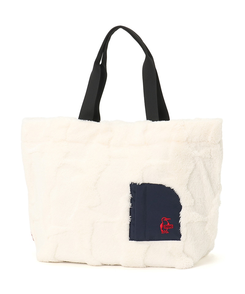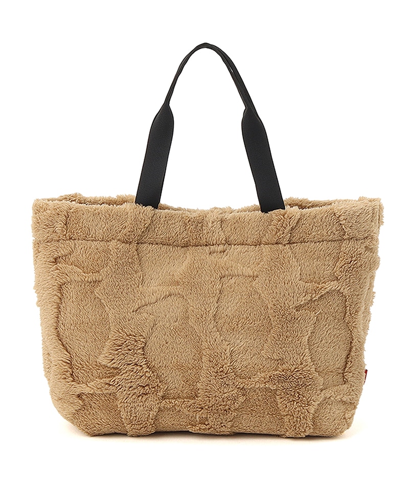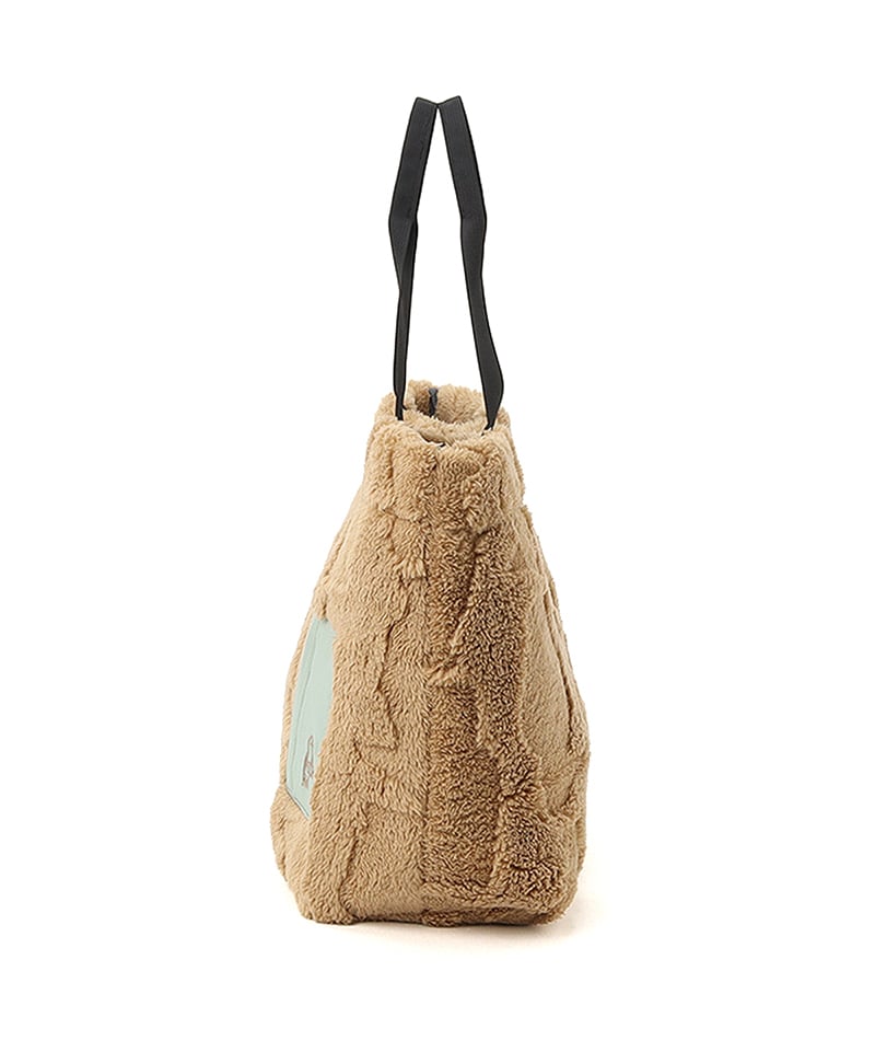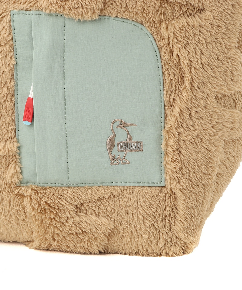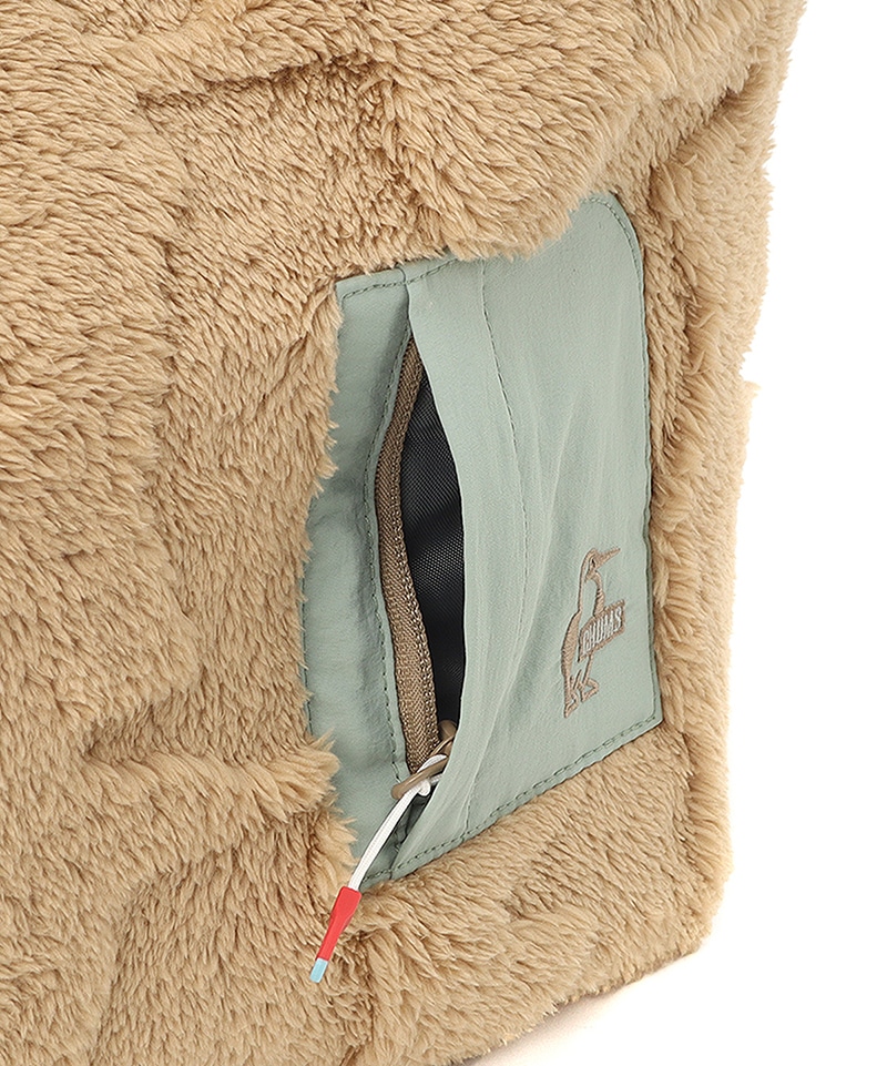 毛足の長さを切り替えることで、ブービーバードのシルエットを表現したジャカード織のフリースバッグ。ふわふわとした優しい肌触りの「エルモフリース」をメインに使用し、裏地や摩擦・負荷がかかりやすい部分にはナイロン生地を採用。見た目のかわいさだけでなく、耐久性や使い勝手も考慮した仕様です。