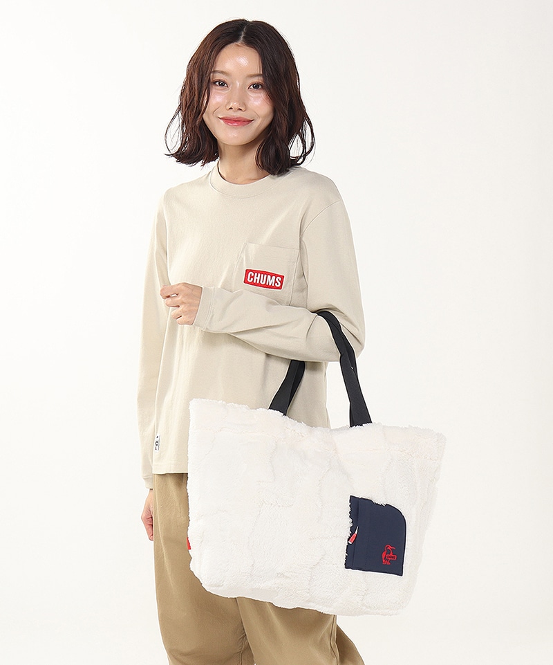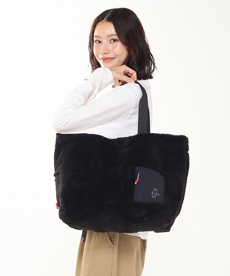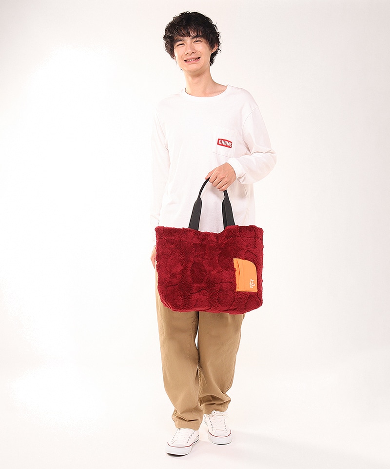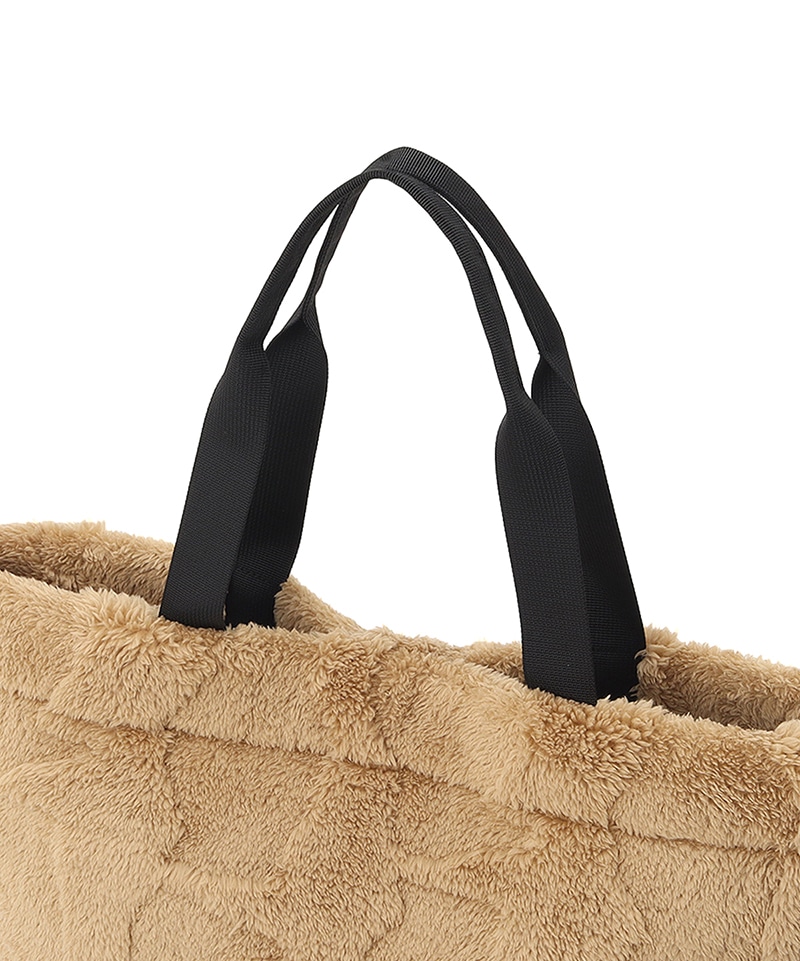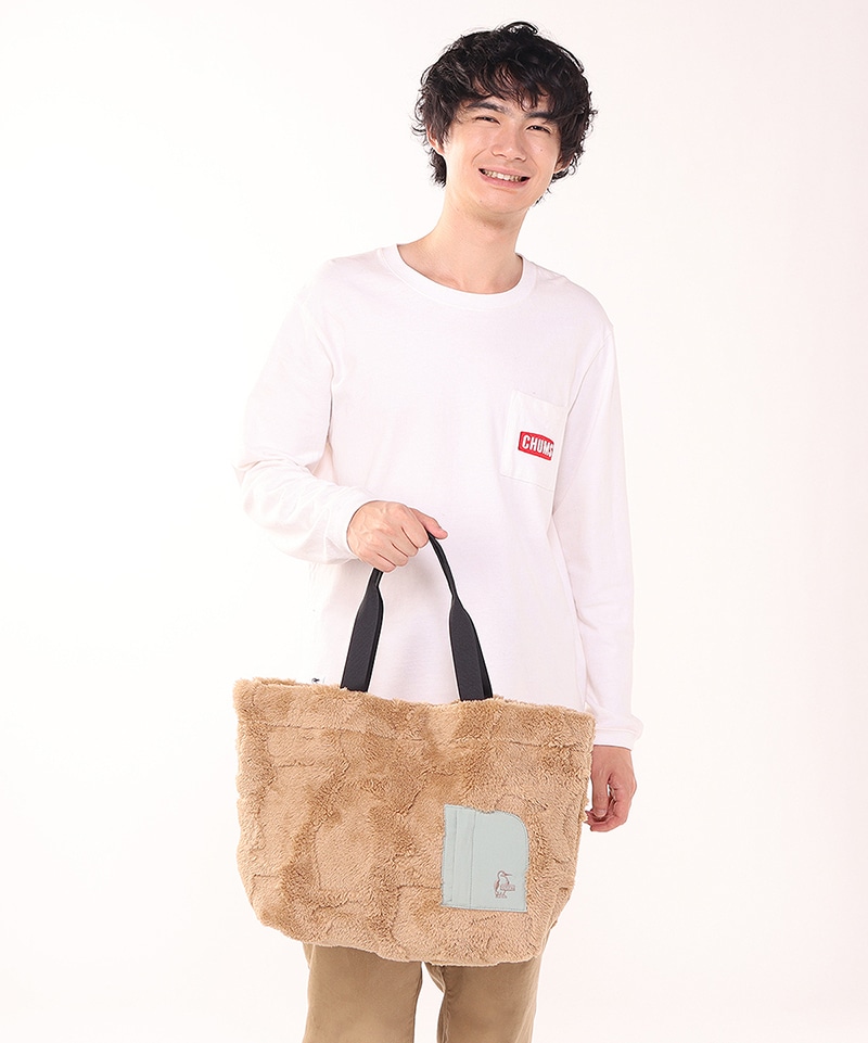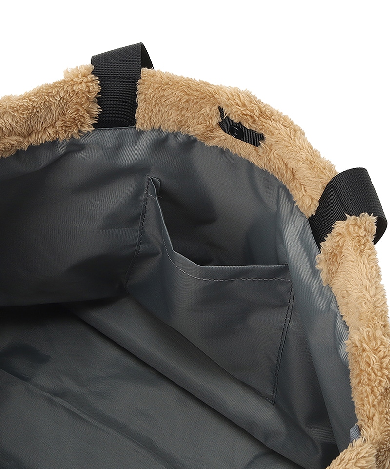 毛足の長さを切り替えることで、ブービーバードのシルエットを表現したジャカード織のフリースバッグ。ふわふわとした優しい肌触りの「エルモフリース」をメインに使用し、裏地や摩擦・負荷がかかりやすい部分にはナイロン生地を採用。見た目のかわいさだけでなく、耐久性や使い勝手も考慮した仕様です。
