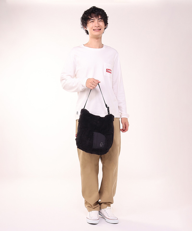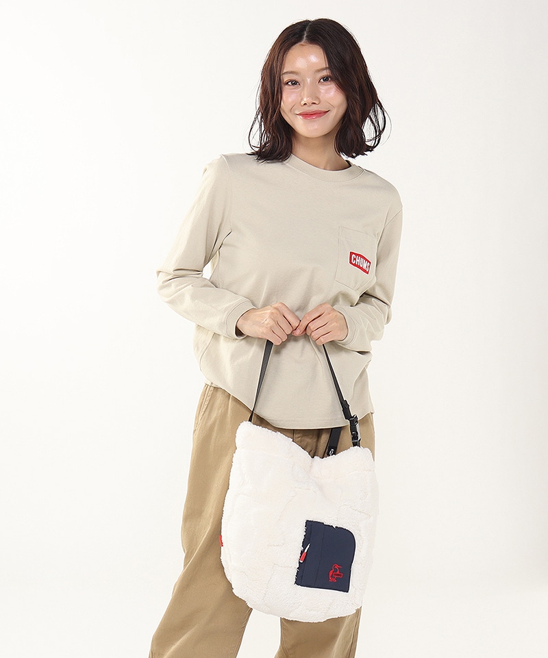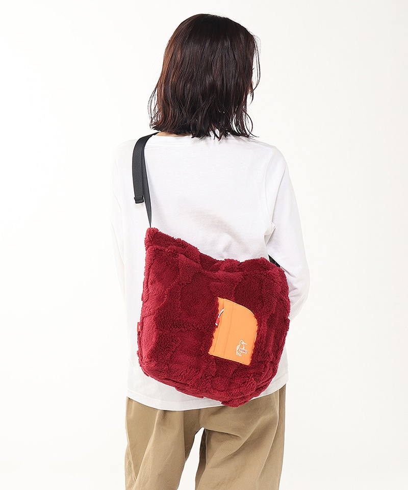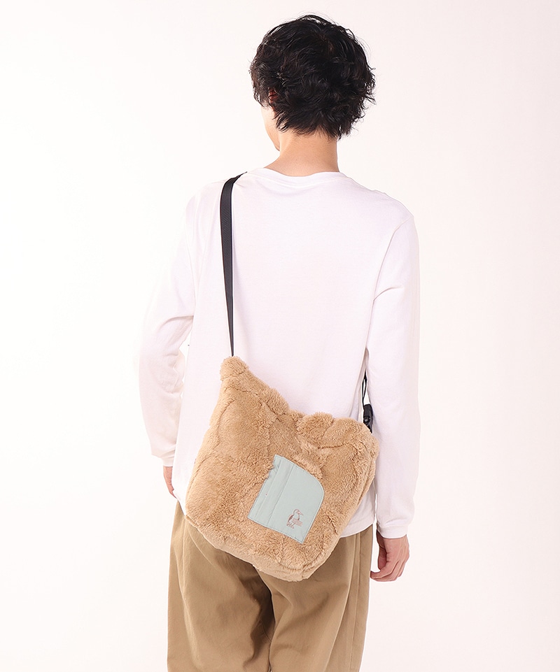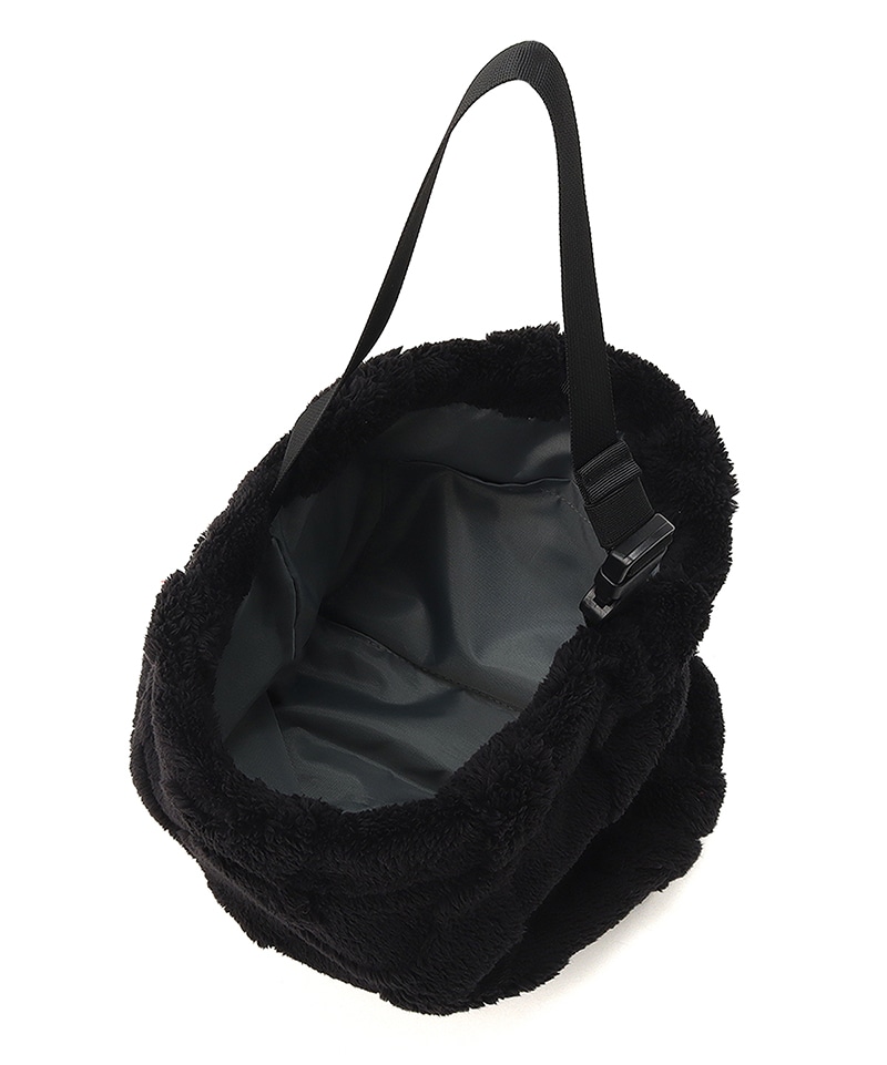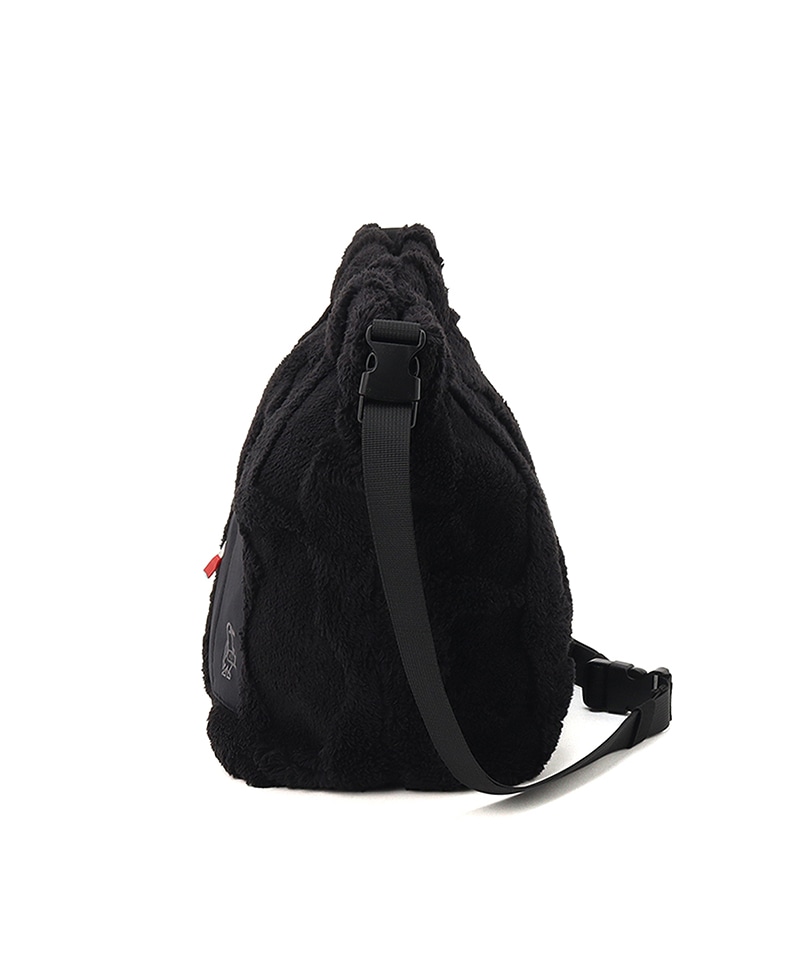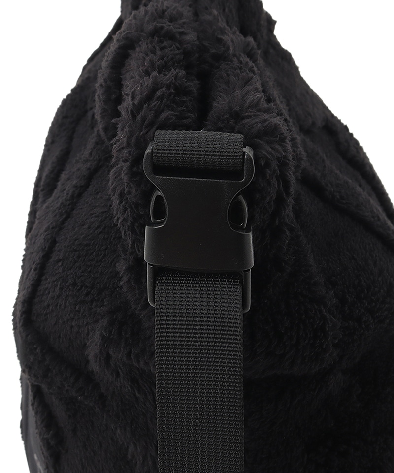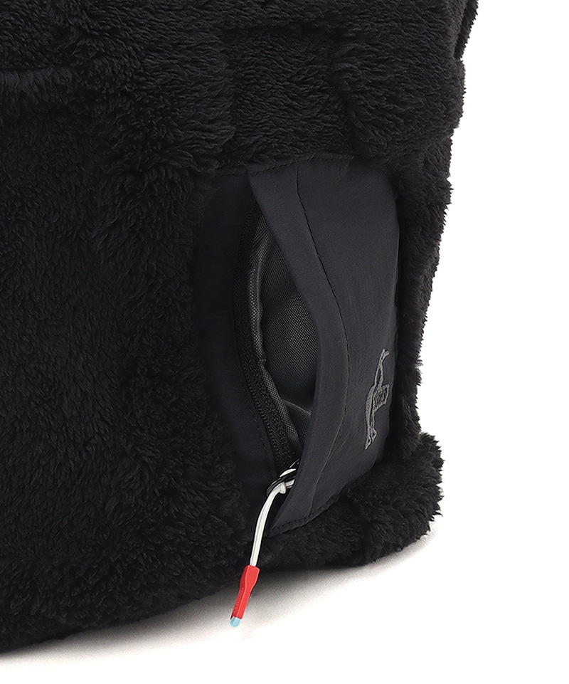 フリースの毛足の長さを切り替えることで、ブービーバードのシルエットを表現したジャカード織のフリースバッグ。ふわふわとした優しい肌触りの「エルモフリース」をメインに使用し、裏地や摩擦・負荷がかかりやすい部分にはナイロン生地を採用。見た目のかわいさだけでなく、耐久性や使い勝手も考慮した仕様です。
