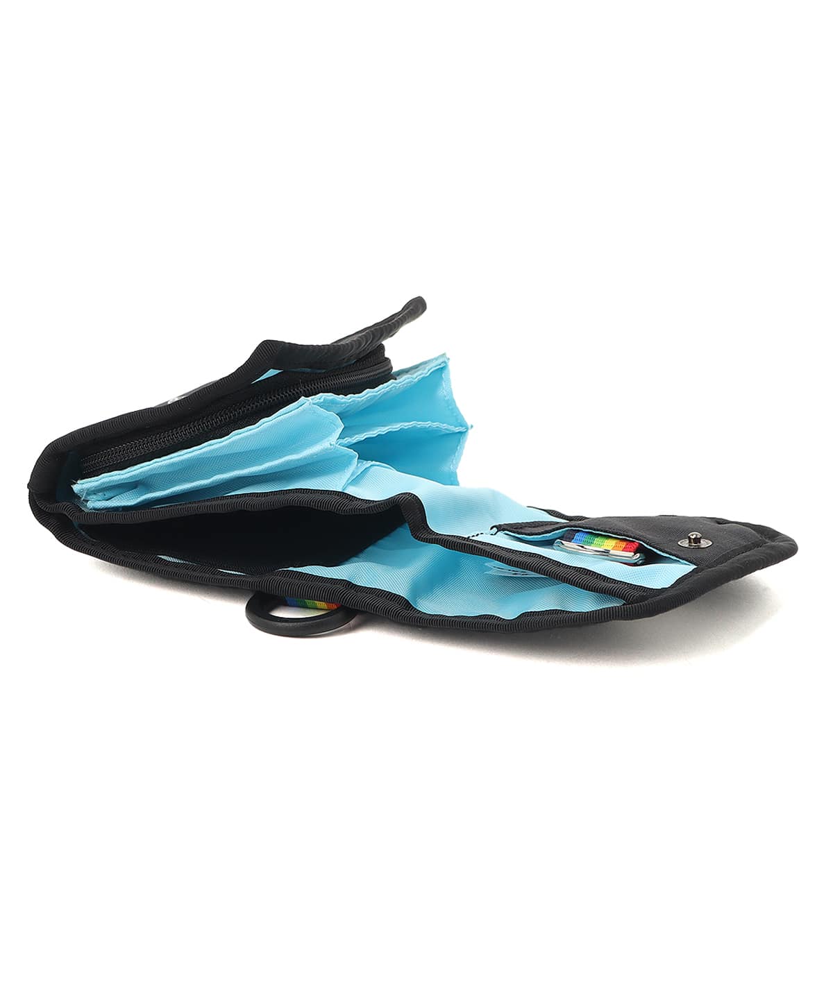 ・側面:ストラップやカラビナが取り付けられる便利なDカン付き