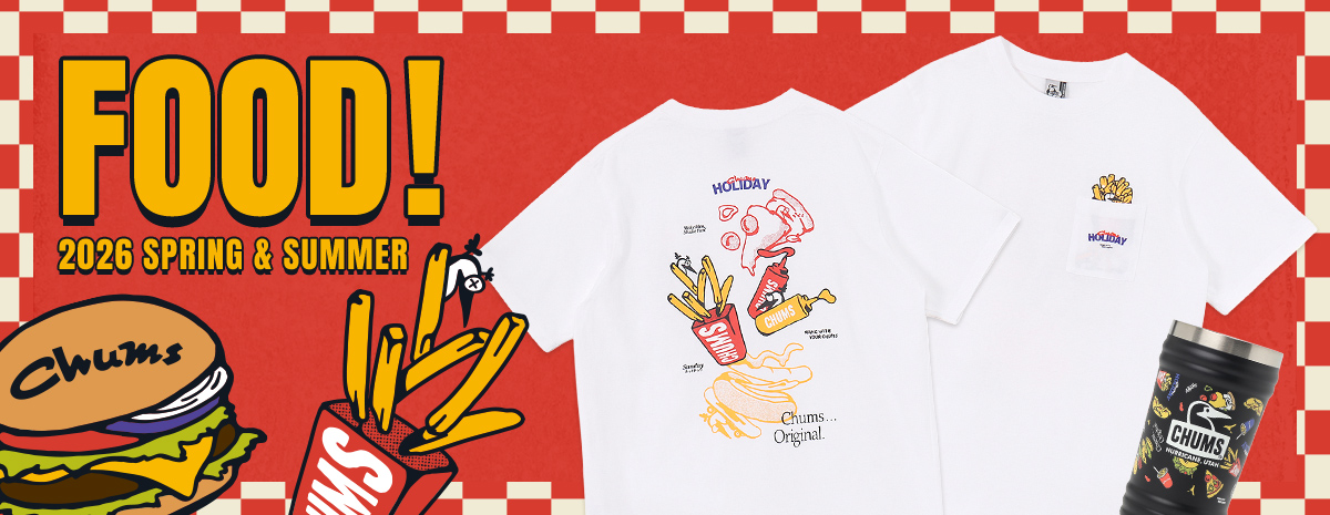 今季のCHUMSはハンバーガー&ポテトがアツい!? 頬張りたくなるFOODグラフィックアイテム